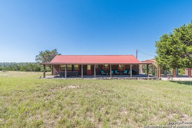 15 acres with gorgeous cabin is the perfect spot to land in the hill country. This cabin is ready for an investor for short term rental, $$$ vacation get away. Situated to take in the views and privacy located about 30 minutes to Comfort and Fredericksburg, Tx. The Texas wine country is a wine country destination year round and offers shopping and restaurants. This property is a destination worth the short drive to get away from it all-- seller has decorated this cabin like a magazine and furnishings are negotiable. Extras include outdoor bar, wrap around porches, hot tub, 3 car carport, huge metal building and plenty of room to add more cabins. Set up your private showing or FaceTime tour today. A rare find in the Texas Hill Country- live the quiet peaceful life or invite guests to sit back on the porch and take a real vacation.