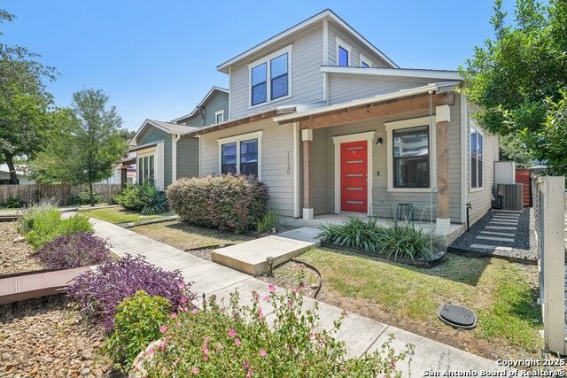 FOR LEASE OR SALE* Move-in ready and beautifully appointed, this 3-bedroom, 2.5-bathroom garden home is located in East Village-a thoughtfully designed and beautifully landscaped community in the heart of the Dignowity Hill Historic District. This short-term rental-friendly neighborhood features classic craftsman-style homes with inviting front porches. Inside, you'll find a stylish interior with high ceilings, abundant natural light, and polished concrete floors that create a warm, contemporary feel. The kitchen is a true centerpiece, offering a spacious island, quartz countertops, tile backsplash, and stainless steel appliances, with added benefits like a security system and reverse osmosis water filtration. The primary suite is conveniently located on the main level and includes a private en-suite bath. A private backyard and true lock-and-leave flexibility, this home offers the perfect mix of urban convenience and neighborhood charm-just a short walk to the Hays Street Bridge and Lockwood Park, and only minutes from The Pearl, the Riverwalk, Southtown, Brackenridge Park, the zoo, and a nearby golf course. Whether you're looking to live, invest, or simply enjoy all San Antonio has to offer, East Village delivers.