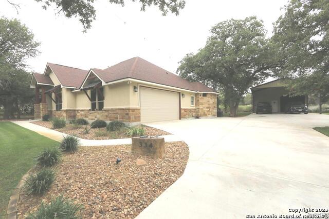 A Very Clean 1-Owner Ranch Style Hm w/Lots of Extras' on 1.57 Acres that is Fully Fenced w/Metal Frontal Wrought Iron Fencing & Auto Gate Entry PLUS Lush Landscaping..w/Sprinkler Sys in Wood Valley Acres Subd in Adkins,Tx that has No City Taxes or Mandatory HOA Dues..Low 1.7% Tax Rate & Sought after LVISD..Attached Approx 650sf Side Entry Gar & Detached Approx 720sf Metal Workshop w/480sf Metal Carport...This is a Local Builders HM that Shows like a Model..Very Open Floorplan w/Lots of Transom Windows for Natural lighting...4-BD All w/Walk in Closets..PLUS.. A Study w/French Doors & Deco Beamed Ceiling..2.5 Bathrooms...Spacious Island Kit w/B'fast Bar,Pendant Lighting,Blt in Cooktop w/Pot Filler,Blt in Micro/Oven,42" Custom Cabinets & Walk in Corner Pantry...Rocked Corner Fireplace in Living Rm w/Raised Deco Beamed Ceiling..8' Tall Doors...Lots of Crown Molding,Window Coverings & Recessed Lighting...,Custom 8' Tall Metal French Door Entry...Ceramic Wood Looking Plank Style Flooring *Thru-Out*...Gorgeous Main Ba w/Island Soaker Tub,Walk Thru Shower,2-Sink Vanities & 2-Walk in closets..Approx 12x8 Utility Rm w/Laundry Sink & Upper/Lower Storage Cabinets....Approx 300sf Covered Patio w/Cathedral Ceiling...PLUS 5-Zone Sprinkler Sys & Rocked Mail Box..Again "Very Clean Hm" that Displays a Ton of TLC..Thru-Out..A Must-See....COUNTRY LIVING...in Wilson County...