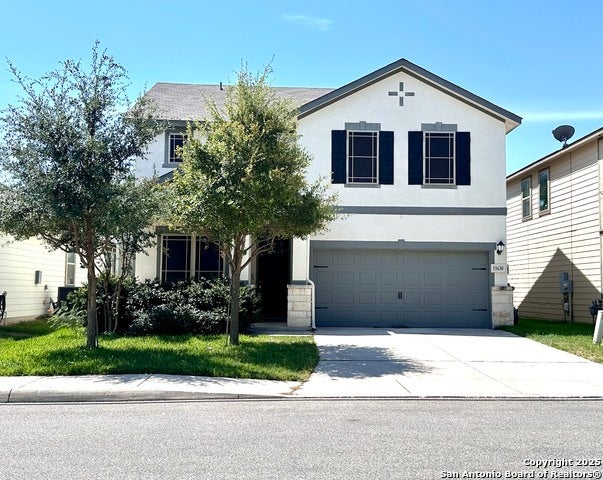 Beautiful 2-story home featuring 4 spacious bedrooms and 2.5 bathrooms, each bedroom equipped with ceiling fans for added comfort. The open floor plan offers a comfortable living space perfect for entertaining, including a separate dining area and a breakfast bar. The kitchen is equipped with modern appliances and gas cooking, making it both stylish and functional. Additional features include a water softener, a dedicated media room for movie nights or gaming, and a small loft ideal for an office or reading nook. Step outside to a private backyard oasis complete with a sparkling swimming pool, perfect for relaxing or hosting gatherings. Located off Galm Rd. with quick access to 1604 and just 15 minutes to UTSA, near shopping and dining. Weekly pool service included.