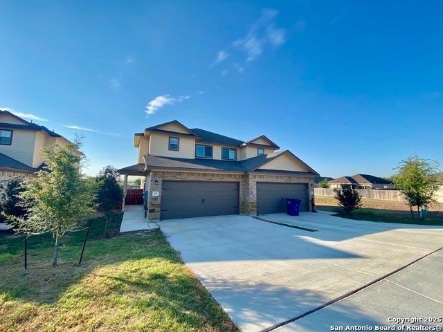 Conveniently located in a quiet subdivision close to HWY 35, HWY 46, and FM275. New Braunfels, Seguin, and Mcqueeney are all just a few miles away. Move in ready, two story, home with a split floor plan. Walk through the front door into an open living/ dining combo with convenient half bath on main level. All 3 bedrooms and laundry room are on the second floor. Kitchen features stainless steel appliances, including fridge, and a closet sized pantry with lots of shelves. Primary bedroom has an en-suite with walk in shower good size closet. The other two bedrooms are connected by a jack and jill bath. All bedrooms have ceiling fans. The upstairs laundry room has washer/dryer connections. Enjoy the shaded patio outback and a fully fenced spacious backyard. Two car garage. The property is clean and available for you today! Schedule a tour, you won't be disappointed.