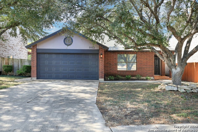 Stunning four-side brick single-story home, recently renovated from top to bottom. Step inside and discover fresh paint throughout, brand-new flooring, and updated light fixtures including ceiling fans in every bedroom. The kitchen is a showpiece with freshly painted white cabinets, granite countertops, a stainless steel stove and dishwasher, included refrigerator, and a central island ideal for meal prep or casual dining. The main living area features elegant luxury vinyl flooring, while all bedrooms offer brand-new carpet. The primary suite includes a beautifully renovated en suite bath for added comfort. Outdoors, enjoy a private fenced yard with a patio slab and mature trees, perfect for relaxing or entertaining. Conveniently located near the Medical Center, Highway 151 business corridor, Sea World, Fiesta Texas, shopping, and dining-this home combines style, comfort, and prime location.