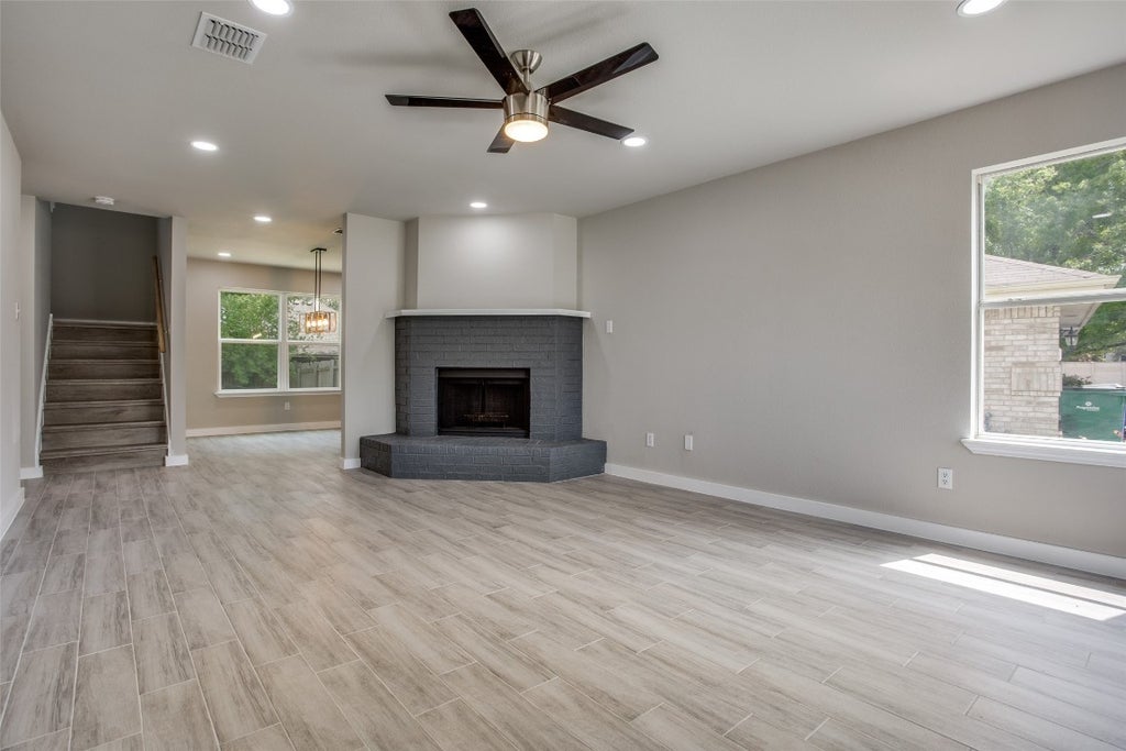 REMODELED beauty ready for move-in! This 2 story home has 4 bedrooms/2.5 baths with all bedrooms located upstairs. Gorgeous tile, updated bathrooms, and No Carpet throughout. Refrigerator included. There are two downstairs living areas, a dining area, a corner fireplace, and large front and back yards. Within walking distance to K-12 schools and one block from neighborhood park with walking and biking trails.