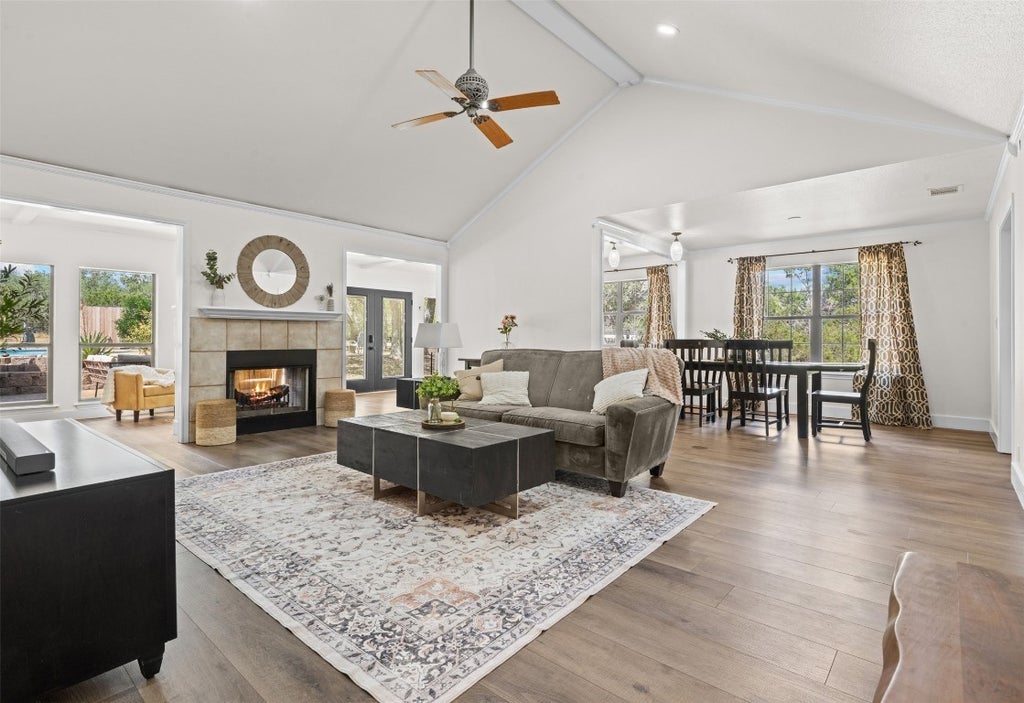 Step into Hill Country living with this 3-bedroom, 2-bath, 2,325 sq. ft. home designed for comfort and outdoor entertaining. Set on 2.77 acres, this property offers space, privacy, and a lifestyle that will make it hard to leave. Inside the open floor plan, you’ll find vaulted ceilings, large windows that fill the home with natural light, and a double sided fireplace. The kitchen and bathrooms have been updated, and an enclosed four-seasons room extends the living space year-round. A flexible air-conditioned bonus room off the garage is perfect for a private office, home gym, or hobby space. Spend your days relaxing by the sparkling pool, creating memories around the firepit, and enjoying shaded patio areas beneath mature trees on the fully fenced property. Plenty of room to start your own homestead with chickens, goat, and even horses. Conveniently located just 8 minutes from downtown Dripping Springs, this home keeps you close to local favorites — award-winning wineries, breweries, distilleries, live music venues, and Hill Country dining. Everyday errands are simple with H-E-B and local shops nearby, and Austin is just a short drive away when you need it. All this in the highly sought-after Dripping Springs ISD.