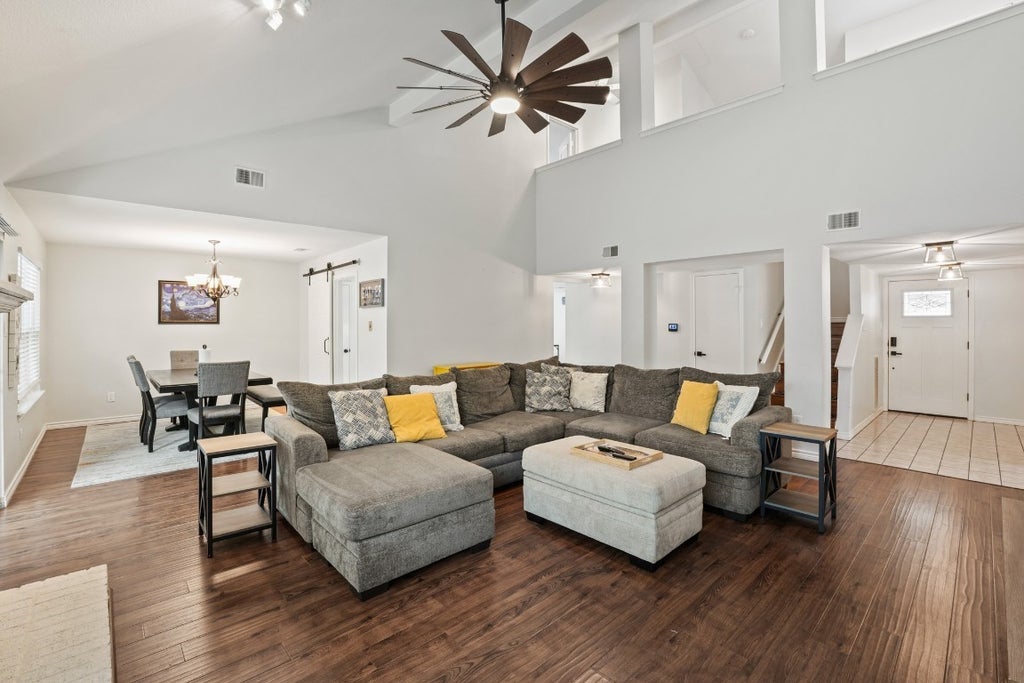 Tucked into the heart of Milwood, this lovingly-maintained North Austin gem has the kind of layout that keeps up with a full house, a busy crew, or whatever life throws your way. The main level offers flexible living with multiple bedrooms. Upstairs, you’ll find an oversized primary suite built for recharging, plus a second bedroom with its own full bathroom—perfect for a busy crew or anyone who likes a little extra privacy. Laminate wood flooring runs throughout (no carpet anywhere), and vaulted ceilings bring in natural light and a sense of openness. Recent smart upgrades include a newer HVAC system, energy-efficient windows, and a modern alarm system for added comfort and peace of mind. The backyard is shaded, spacious, and hot-tub ready with pre-installed hookups. The icing on the cake is: a powered shed with A/C—just waiting to become your home office, creative studio, backyard bar, or quiet escape. Located minutes from The Domain, major highways, hospitals, and the Apple campus—with low property taxes to top it off—this home is move-in ready but still full of possibility. It’s not just a place to live—it’s a place to land, grow, and make entirely your own.
