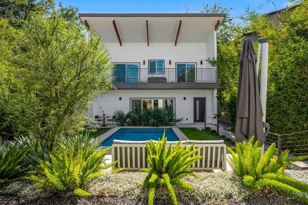 Tucked behind a private gated entrance, this architectural gem rests amid lush, leafy grounds, offering rare seclusion in the heart of vibrant East Austin. Envisioned by renowned Austin architect Francois Levy, whose work has been celebrated in Dwell and featured on HGTV, the residence is a one-of-a-kind urban sanctuary that seamlessly blends indoor sophistication with outdoor serenity. Completed in 2015, this two-bedroom, two-bath resort-style home is centered around a stunning heated pool, creating a private oasis for relaxation and entertaining. A unique, dual-sided, oversized, 2-car garage effortlessly transforms into a cabana-style lounge, perfect for effortless al fresco living. Sustainability and design are closely intertwined here, with native landscaping, spray foam insulation, a long-lasting metal roof, and a thoughtful floor plan. Light-filled interiors, an expansive balcony, and a private courtyard designed for gatherings under the stars showcase the best of Austin’s modern architectural spirit. With its distinctive layout, refined finishes, and seamless integration of nature and design, this residence is more than a home — it is a contemporary statement piece destined to leave a lasting impression.