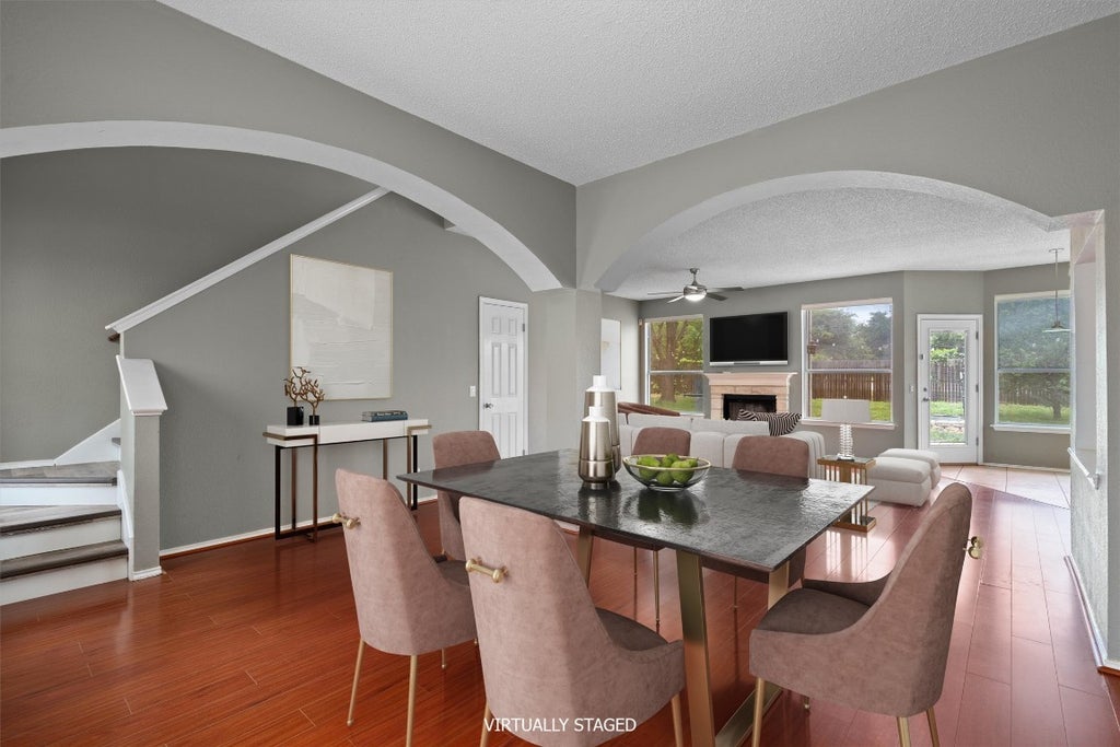 Yes - you can have over 2100 sq.ft. of space for just $335K! Brand new roof and gutters!! Tucked away on a cul-de-sac, this two-story home offers both space and functionality in a prime location. The thoughtful layout features 3 bedrooms, 2.5 bathrooms, and an upstairs bonus room: perfect for a second living area, media room, or play space. The primary suite includes a spacious en-suite bathroom with dual vanities, a shower and separate tub, and 2 walk-in closets (no need to share). Two additional bedrooms and a full bath are also located upstairs. No carpet throughout for easy maintenance and cleaning! Downstairs, enjoy a flexible formal dining room that can double as an open-air home office, a convenient guest powder room, and a laundry area and garage access. The open-concept kitchen boasts an eat-in dining area, solid surface countertops, stainless steel appliances and flows into the dining and living areas with direct access to the backyard—perfect for entertaining or just relaxing around the firepit. Green thumbers will enjoy the large greenhouse in the backyard. Located just minutes from parks, trails, with easy access to I-35, Tollroad-130/45, and nearby shopping and dining. Washer, dryer and fridge all included!