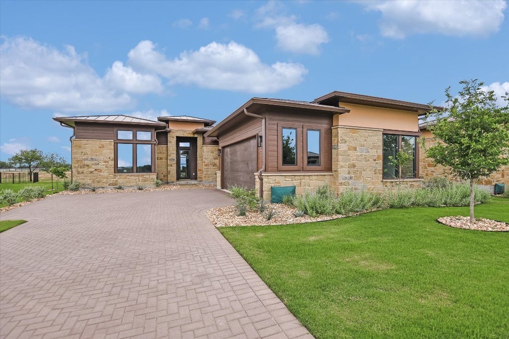 * Modern Luxury on the Fairway – Lock & Leave Living in Lakecliff * Discover refined living in this brand-new luxury garden home overlooking the prestigious Arnold Palmer-designed golf course at Lakecliff on Lake Travis. Built for the discerning buyer seeking both style and simplicity, this 2,449 sq ft one-story home offers an effortless lock-and-leave lifestyle inside one of Central Texas’s most exclusive gated golf and racquet communities. From the Thermador appliances and Kent Moore custom cabinetry to the high-end wood and tile flooring, every inch is crafted with timeless elegance. Soaring 10–12 ft ceilings, 8-ft solid core doors, and Andersen 400 casement windows create a bright, open atmosphere with serene fairway views. * 3 Bedrooms + Office | 2.5 Baths * Covered Patio with Built-in Grill – perfect for entertaining * Optional Private Pool Package Available * Golf Cart Garage & Epoxy-Coated Floors * EV Charger & Rinnai Tankless Water Heater with Recirculating Pump * Delta Fixtures | Rainbird Irrigation | Foam Insulation * Carrier High-Efficiency Heat Pump. Set on a quiet street within Lakecliff on Lake Travis, this community offers more than just golf—it’s a lifestyle. Residents enjoy access to the private Racquet Club, fitness center, social events, and beautifully maintained grounds with low 1.52% tax rate and HOA-managed lawn care. Just far enough from the city to offer peace, privacy, and true Hill Country charm—but close enough to enjoy Lakeway, Bee Cave, and the Hill Country Galleria when you want them. Whether you're seeking a primary residence, second home, or a place to unplug and unwind, this home offers low-maintenance luxury in a destination setting.