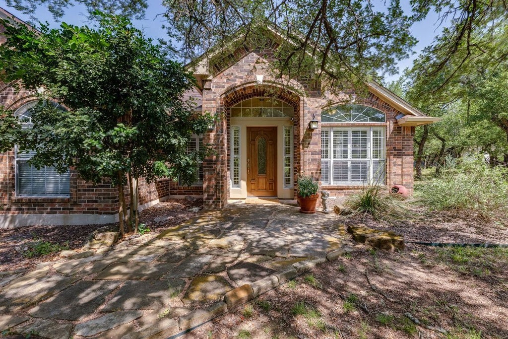 Experience the essence of country living on this 1.743-acre property in popular Saddletree Ranch—peaceful, private, and surrounded by nature—yet just a short drive to the amenities of Dripping Springs, historic Mercer Street, the Hill Country Galleria, Lake Travis, or Austin itself. With over 200 trees, the home feels truly tucked away, offering rare privacy and a serene backdrop visited by local wildlife like whitetail deer, foxes, and hummingbirds. Built in 1995, this stately one-story offers 4 bedrooms and 2 baths with a flexible layout. Enter to find a parlor/flex space and formal dining area, leading into a bright kitchen with skylight, granite countertops, and new cabinets. The kitchen opens to a casual dining area and a living room with gas log fireplace and backyard views. The primary suite includes cove ceilings, dual walk-in closets, and a peaceful view. The fourth bedroom is used as an office. No carpet throughout—great for allergy-conscious buyers—and plantation shutters add a polished look. Enjoy generous outdoor living with a spacious raised deck that easily accommodates a crowd, plus a patio below. The home sits well back from the street and offers ample parking with an attached 2-car garage and a detached 25’x30’ garage with insulated door, window A/C, and several 220 outlets—ideal for a workshop, art/yoga studio, gym, game room, or classic car storage. Additional perks include a 2024 tax rate of 1.564, low $216 annual HOA fee, and zoning to acclaimed Dripping Springs ISD. Horses and chickens allowed. Enjoy Saddletree Ranch Park with picnic pavilion, tennis, basketball and volleyball courts, baseball field, playground, and rentable clubhouse.