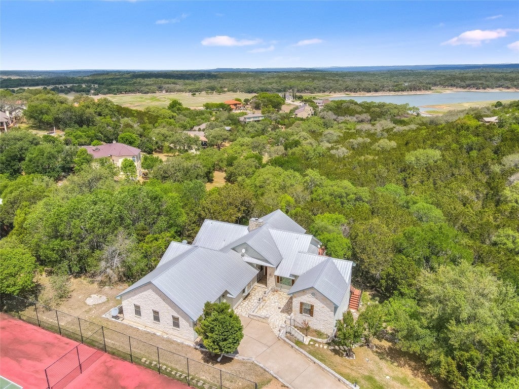 This beautiful home is a must see!!! This home is located in the gated, waterfront community of Ridge Harbor on Lake Travis. The home is 3240 square feet and has 1973 feet of porches and decks. It sits on 1.9 acres and backs up to the canyon with unobstructed Hill Country and Lake Travis views. The house was updated in 2006. The home has 3 bedrooms and 3 baths. There is a bedroom suite with bathroom on each level of this home. The kitchen is a chef's dream! It is large with seating in the kitchen, high ceilings and lots of light. There is a range as well as a wall oven and microwave. The kitchen upper cabinets and built-in china cabinet are lighted. There are two bedrooms on the main level and one on the lower level. The home has huge views of the Hill Country and the lake from every window on the back of the house. You also have views from the dining room and kitchen. There is a large cedar closet off of the laundry room. This home has a two car oversized garage with lots of storage and shelves. The home is perfect for large gatherings or for a relaxing retreat. It is a wonderful home for children. The tennis courts, pickleball court, playground and community pool are only steps away. Ridge Harbor has a community pool, tennis courts, a playground, marina, boat ramps and a waterfront park. Close proximity to Spicewood Airport. Ridge Harbor also has private water and sewer and underground utilities. The home has a new standing seam metal roof, completed on August 29, 2023. Come see this beautiful home and enjoy the peace of the Hill Country!