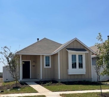 MLS# 1802159 - Built by Brohn Homes - Ready Now! ~ This one-story new home combines charm and function with features such as its rear covered patio where you can entertain, an alley access lot, and a two-car detached garage for storage. The home's interior showcases wood-look vinyl flooring throughout the main living areas, white cabinets, and a tankless water heater. Inside the kitchen, you'll find 42-inch upper cabinets, 3 cm granite countertops, and a pantry, and the bathrooms all have raised bathroom vanities with Silestone countertops. Retreat to the primary suite where the walk-in shower and walk-in closet will make the everyday routine easy. Casetta Ranch, the award-winning community based in Kyle, is an oasis to relax. Explore the community amenity center, swimming pool, playground, park, or nearby restaurants. There's even a high school within walking distance. Get ready to make this house your home!