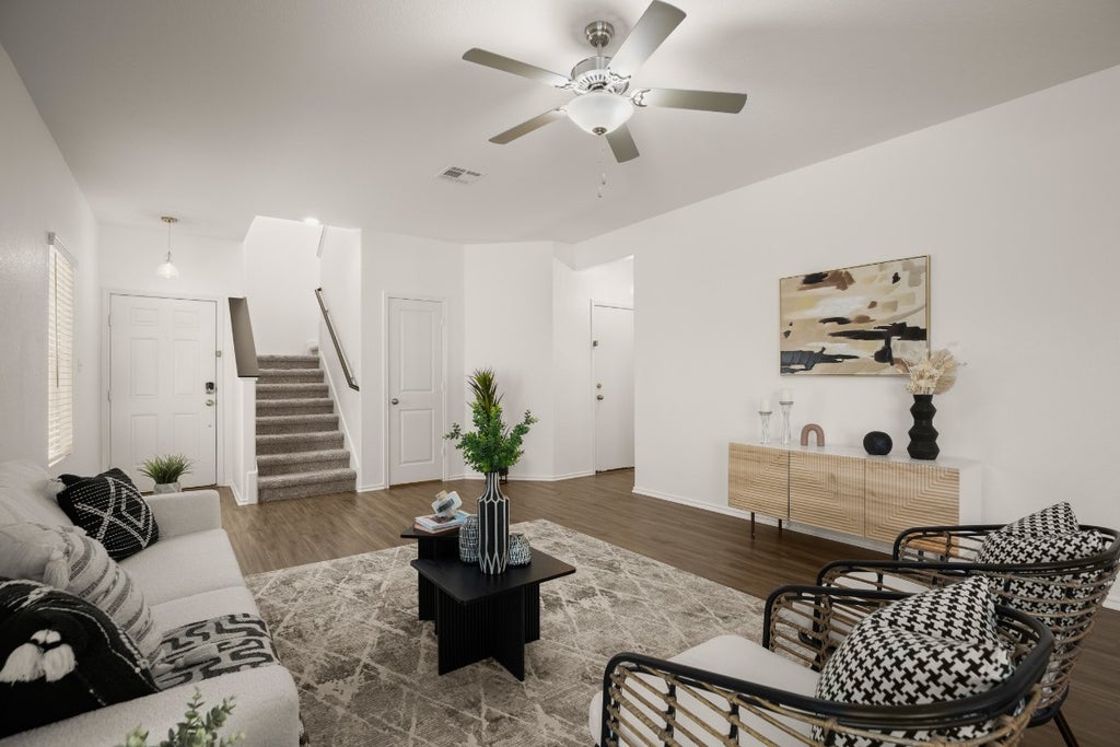 Conveniently located between Hwy 183 and Hwy 29, this home offers easy access to the new H-E-B and Georgetown Square. The open floor plan connects the kitchen, dining, and living areas — perfect for entertaining. The kitchen features Silestone countertops, subway tile backsplash, stainless steel appliances, a gas range, and 36" espresso cabinets. Wood-look laminate flooring runs through the main level, with carpet in the primary suite. The primary bath includes dual vanities, soaking tub, separate shower, and walk-in closet. Upstairs, a spacious game room/flex space is joined by three bedrooms — one with a private bath, plus an additional shared bath. A downstairs powder bath adds extra convenience. Enjoy the covered back patio and nicely sized backyard. Recent updates include upgraded ceiling fans and light fixtures. Pets considered with landlord approval. Orchard Ridge residents enjoy resort-style amenities: clubhouse, pool and splash pad, pavilion with grills, fitness center, trails, community garden, and orchards with fruit and nut trees. This move-in-ready 4-bedroom home offers plenty of space and an unbeatable community lifestyle.