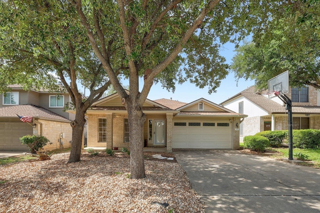 Stunning & Unique Cedar Park Gem backing to a serene community green space. New roof Oct 2025! Located in Quest Village, this charming single-story home offers two distinct living areas, a bright and spacious eat-in kitchen, 3 bedrooms, two full baths, and an incredible backyard retreat with direct access to the walking trail behind the home. Just a short stroll to the neighborhood park, Blue Corn Harvest, Whitestone Brewery, and more. This well-established area is known for its peaceful tree-lined streets and walkability! Step inside to find a spacious living room off the entryway with a seamless flow into the luminous open floor plan family room and eat-in kitchen. High ceilings, neutral tones, and tile plank floors with the character of reclaimed wood add a warm, modern touch. The kitchen features granite counters, stainless steel appliances, and a center island with inviting bar seating. The generous primary suite includes a large ensuite bath with dual vanity, garden tub, walk-in shower, and a walk-in closet. There’s also fresh paint throughout plus an updated water heater. Enjoy outdoor living on the custom cabana - featuring a wood-burning fireplace, stone surround, ceiling fans, lighting, and a dramatic vaulted ceiling, perfect for relaxing and gathering. The fenced-in yard provides plenty of space to play and grow with a thoughtful mix of lush lawn and water-wise xeriscaping for easy maintenance. A gate opens directly to scenic trails that lead to the park and library. Zoned to top rated Leander ISD schools, and just minutes from major retail at The Parke and 1890 Ranch. Convenient access to 183 and Whitestone/1431. Only 10 miles to the North Austin Tech Corridor and 21 miles to Downtown Austin, with nearby Metro Rail options at Leander and Lakeline. Suburban ease meets city connection—don’t miss it – come take a tour today!