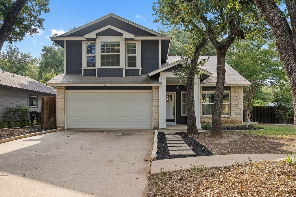 This beautifully updated 3 bedroom, 2.5 bathroom home on an oversized corner lot blends modern style with everyday functionality - all less than 1 mile from Apple Campus and just minutes to The Domain, Dell, and Samsung. A brand-new roof brings peace of mind, while the refreshed interior showcases clean lines, thoughtful finishes, and plenty of natural light. Inside, the open floor plan strikes the perfect balance of inviting living spaces and private retreats. The kitchen shines with crisp white cabinetry, subway tile backsplash, quartz counters, and stainless-steel appliances. The spacious living areas feature wood-look floors, vaulted ceilings, and a striking fireplace with rustic wood accents. A versatile front flex room offers endless possibilities - ideal for a home office, playroom, or extra living or dining. Upstairs, the serene primary suite boasts a wall of windows and a spa-inspired bath with dual vessel sinks and a walk-in shower. Secondary bedrooms are generously sized and filled with light, creating comfort for everyone. Step outside to your private backyard oasis featuring mature oak trees, a large patio for entertaining, lush green space for play, and a storage shed for all your gear. Plus, enjoy being within walking distance to Rattan Creek Park - with a community pool, hike and bike trails, basketball and tennis courts, and so much more! With modern updates, a smart floor plan, and unbeatable location, this home is move-in ready and waiting for your next chapter! *New Roof Installed 9/1*