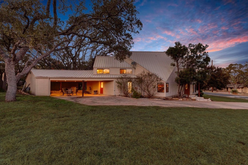 Welcome to 318 Coventry Road, a lakeside community retreat tucked away in the serene surroundings of Spicewood, Texas. This beautifully renovated 1,864 square-foot home, sitting on a lush .513-acre lot, is custom-built with two primary suites, designed to provide a private and luxurious living experience. The home has impressive curb appeal with floor-to-ceiling windows and a metal roof adding to the allure and longevity of the residence. Step inside to discover a harmonious blend of rustic charm and modern flair, featuring stained wood ceilings, shiplap walls, and a cozy stone fireplace. With two spacious bedrooms, two pristine bathrooms, and ample parking for two vehicles, this house is the perfect blend of comfort and convenience. Set in the exclusive Windermere Oaks community, residents enjoy a myriad of resort-style amenities such as three pools, a private marina with a launching dock, community grills, and tennis and pickleball courts. The spirit of the community is elevated by its access to water facilities and the convenience of a nearby private airport. Nature lovers and outdoor enthusiasts will find themselves surrounded by local attractions including Muleshoe Bend Park and Krause Springs, with premium golfing available at Briarcliff and Lakecliff Golf Courses. Unwind at the Stonehouse Winery, just moments away, offering the perfect blend of leisure and luxury. This unique property is not only a tranquil sanctuary but also presents an exciting short-term rental opportunity. For those seeking a property with exceptional amenities, breathtaking views, and potential income streams, 318 Coventry Road is a must-see. Claim your slice of Lake Travis paradise today!
