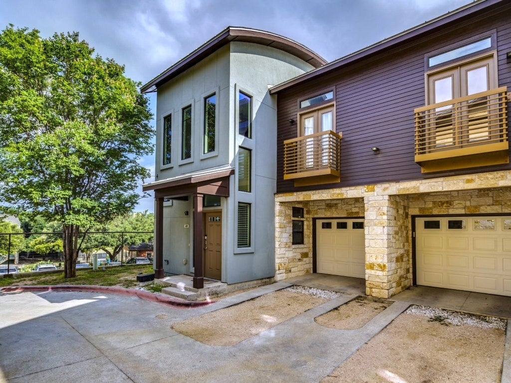 Live in the heart of it all in this bright and modern end-unit condo. Just steps away from South Congress favorites like Home Slice Pizza, Perla’s, Jo’s Coffee, Allen’s Boots, and the Continental Club, plus Zilker Park and Barton Springs Pool just minutes away. Whether it’s live music, boutique shopping, or Austin’s best dining, you’ll find it right outside your door. Inside, you'll find a layout with abundant windows, flooding the space with natural light. The kitchen features Silestone countertops, stainless steel appliances, gas cooking, and LED lighting. Premium wood floors and tile flow throughout the main level. Upstairs, a versatile loft offers the perfect space for a home office, TV room, or creative studio. Both bedrooms include en-suite baths, and the home features a guest-friendly powder room on the main level. The Primary bedroom even has partial downtown views through its floor to ceiling windows! The attached garage accommodates a small to mid-sized car, and this condo has a 4-Star Green rating with a tankless water heater that ensures efficient, eco-conscious living. Your trash & water services are covered by the association and the unit also just received a brand new exterior paint job that makes it pop!. Don't miss this one!