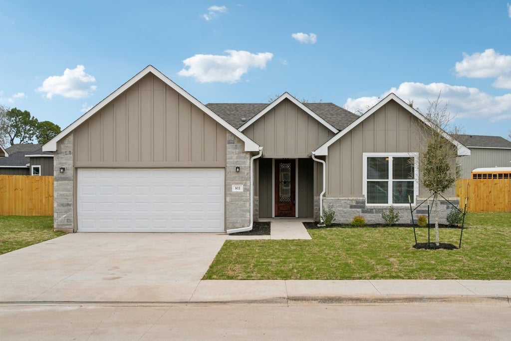***** Zero Down/100% Financing available + Includes all appliances (Refrigerator, Range, Dishwasher, Washer, Dryer and 2” faux wood blinds!***** Experience Smithville’s historic and small-town charm, with local parks, recreation, and access to the Colorado River. No waiting for completion & you’ll be the first owner in your beautiful new home created by Don Barker / Pine River Fine Homes in the new M5 subdivision featuring curbs, sidewalks and street lighting with only 30 other homes! Located on prime corner lot on .23 acres, the carefully designed 1746 sf. open floor plan provides a large, fenced back and side yard with plenty of space and flexibility for all families. 3 bedrooms, 2 full bathrooms with beautiful luxury flooring throughout (no carpet), large open living area with 9’ ceilings plus ample storage throughout. The engineered Kitchen features granite countertops, eat-in dining area, pantry, custom cabinets, stainless-steel appliances, a deep stainless-steel sink with large commercial style faucet and garbage disposal. Spacious primary bedroom featuring beautiful windows, recessed lighting, walk-in shower, soaking tub, quartz vanity with 2 sinks, a separate water closet, plus a large walk-in closet with hanging racks, and plenty of storage. 2nd bath includes a granite vanity and shower/tub combo. Designed for efficiency, this home is entirely foam insulated with hot water constantly circulating for quick delivery. 2-car insulated garage with door opener. Sodded front and back yard with auto irrigation system. 1/2/10 Builder’s Warranty provided. Spectrum high speed internet/cable; City electricity, water, sewer and trash. Play your part in establishing the HOA and fees. All information deemed reliable; buyer to verify. 14 new homes with 5 beautiful floor plans available. Choose yours today!