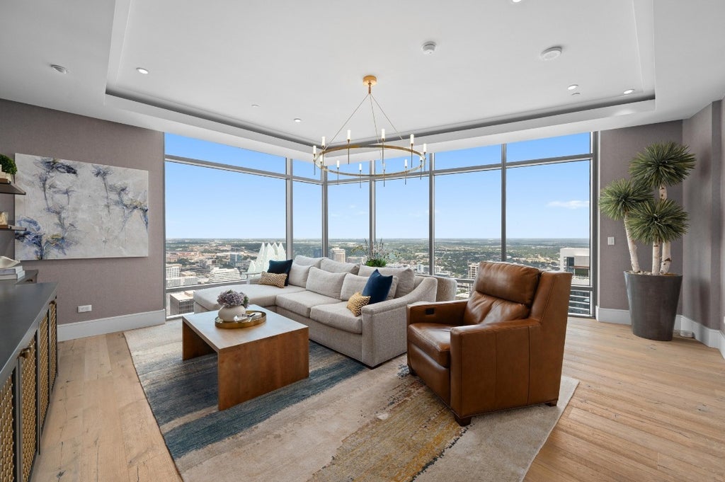 Located in The Austonian, one of downtown’s most coveted luxury condo buildings, Unit 48Y is a refined 3-bedroom, 3.5-bathroom residence designed for modern living. Views of the lake, skyline, and Capitol are framed by floor-to-ceiling windows that bathe the space in natural light— a contemporary backdrop for both everyday living and effortless entertaining. The open-concept floor plan flows seamlessly from the gourmet kitchen with sleek cabinetry, premium appliances, and polished finishes to the elegant dining and living area. Through a wall of paneled glass lies a bedroom or office with custom built-ins, offering abundant storage and a quiet, sophisticated setting for focus. Both bedrooms function like private suites, each with generous closets and spa-inspired baths, while a stylish powder room serves guests. The unit also features an in-unit laundry room and 2 reserved parking spots in the garage. The covered balcony offers exceptional vistas of Austin’s most iconic sites. The Austonian, downtown's premier building, boasts 40,000 sq ft of amenities for 174 units, a rare ratio for Austin condos that ensures privacy and exclusivity. Luxuries include valet parking, a 56th-floor fitness center, pool deck, BBQ areas, a spa room, guest suites, dog park and grooming area, and 24-hour concierge service reserved for owners only. Perfectly located in downtown Austin, The Austonian provides quick access to the Capitol, restaurants, parks, and entertainment. With proximity to light rail stops and major roadways, commuting to Austin Bergstrom airport is effortless. This residence is ideal for those seeking a primary home, a base for exploration, or a part of a residential portfolio. Live in luxury at the heart of Austin in The Austonian. Tax and assessed values are estimates for illustration purposes only. All figures should be independently verified. Call or text agent with 24-hour notice to schedule a tour.