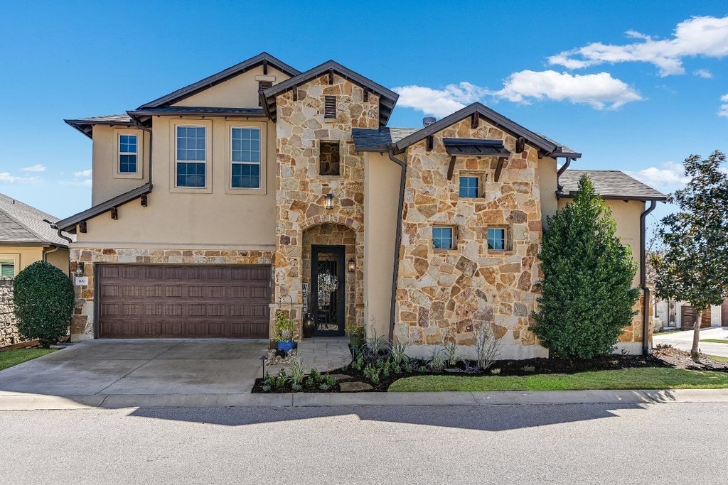 This exquisite home, complete with a private courtyard and a detached casita, was originally the model home for the neighborhood. Designed with unparalleled attention to detail, it boasts a host of luxurious upgrades, including an additional $50k in design enhancements by the current owner. The home radiates natural light, with soaring ceilings and 8 foot doors throughout. As you step inside, you’ll be greeted by a grand living room featuring a beamed ceiling, stone fireplace, and expansive windows that offer serene views of the community pond. The kitchen, equipped with custom cabinetry, a spacious island, quartz counter tops, and top of the line stainless steel appliances, seamlessly flows into the living area, making it perfect for entertaining. The home’s impeccable window treatments enhance the space, allowing sunlight to fill every corner. The primary suite is a private retreat, with a beamed ceiling and a spa-like bathroom with a luxurious walk-in shower with a rain shower head, freestanding tub, and 2 generous walk-in closets. Every room in this home is elegant, pristine, and ready to be personalized with your touch. Upstairs, you’ll find a versatile flex space, complete with a 2nd living area, 1/2 bath, and an additional en suite bedroom that can easily be transformed into an office, gym, or media room. This home includes a large grassy area maintained by the HOA, a three car garage, and the unique benefit of detached guest quarters. Comfort and convenience are further enhanced by a Kinetico water softener and filtration system. The community offers a wealth of amenities, including a spacious event hall, fitness center, gourmet kitchen, covered patio with an outdoor fireplace and TV, and a sprawling deck that overlooks the community pond. Residents also enjoy access to a peaceful walking trail, with Georgetown’s premier shopping, schools, dining, and recreational activities just moments away. Bedford Park is steps from this gorgeous home.