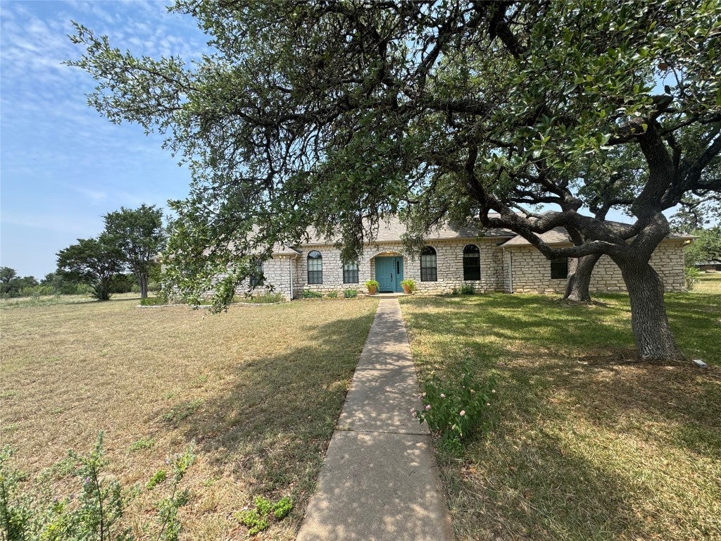 Located on a large 2.1 acre lot in the highly desirable Sunset Canyon neighborhood, this home offers privacy & easy access to Austin & the Hill Country. The newly renovated primary bedroom (including a walk-in closet) & bathroom includes new carpeting & flooring, an oversized bathtub & separate, spacious walk-in shower. Two additional large bedrooms are located at the opposite end of this single level home. The kitchen includes a new oven & dishwasher, a wonderful wood-topped island for food preparation & dining & copious storage space throughout. Immediately adjacent to the kitchen is a convenient informal dining area that looks out to the spacious backyard & its mature oak trees. On the front of the home is an additional formal dining room & a large office/library w/ floor to ceiling bookcases. This sunny room boasts new wood floors & easy access to the kitchen & living rooms. The high ceilings & windows in the oversized main living area accentuate the lovely open space feel of the home. One of the homes back entrances leads to a mudroom (or craft room) that is also connected by pocket doors to the second bathroom. The two-car garage is accessible through the hallway adjacent to the secondary bedrooms. The separate laundry rooms is adjacent to the primary bedroom & has an additional entrance to the deck. This covered deck/patio nearly the length of the home providing an additional living area & an expansive view of the property that contains dozens of large live oak, cactus & vegetable garden. Also on this lot is a large shed or workshop w/ a plumbed sink, interior lighting and electrical connections throughout w/ more storage space than you might ever need! A driveway to the back of the property & garage contains additional parking places A new, energy efficient HVAC unit & water heater have been recently installed. This lovely all stone home is ready for you to move in & start enjoying life in this peaceful part of the Hill Country.