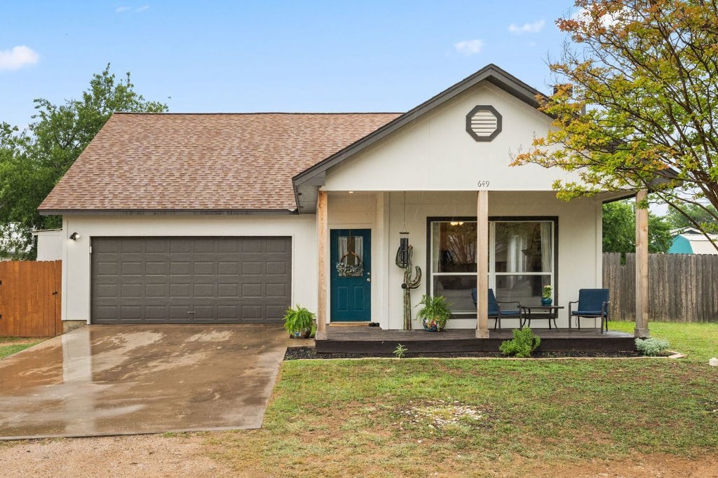 Charming 3-Bedroom Home in Cottonwood Shores! Welcome to the cutest home in the heart of the Scarlet Oaks neighborhood, located in the rapidly growing community of Cottonwood Shores. This delightful 3-bedroom, 2-bathroom residence is move-in ready and ideal for first-time homebuyers looking for comfort, space, and convenience. Step inside to discover an open living area with vaulted ceilings that create a bright and airy feel. Tile flooring throughout adds both style and easy maintenance, while the large pantry provides ample storage. Sitting on an oversized lot, the fully fenced backyard is perfect for pets, play, or entertaining — and even includes your very own treehouse for added charm and fun! Enjoy relaxing mornings on the newly updated front porch, or host gatherings on the spacious new back patio. Located just minutes from Horseshoe Bay, Marble Falls, and a variety of popular restaurants, this home offers both tranquility and access to local attractions. With several community parks nearby, outdoor enjoyment is always within reach. Don’t miss your chance to own this cozy gem in a thriving Hill Country community!