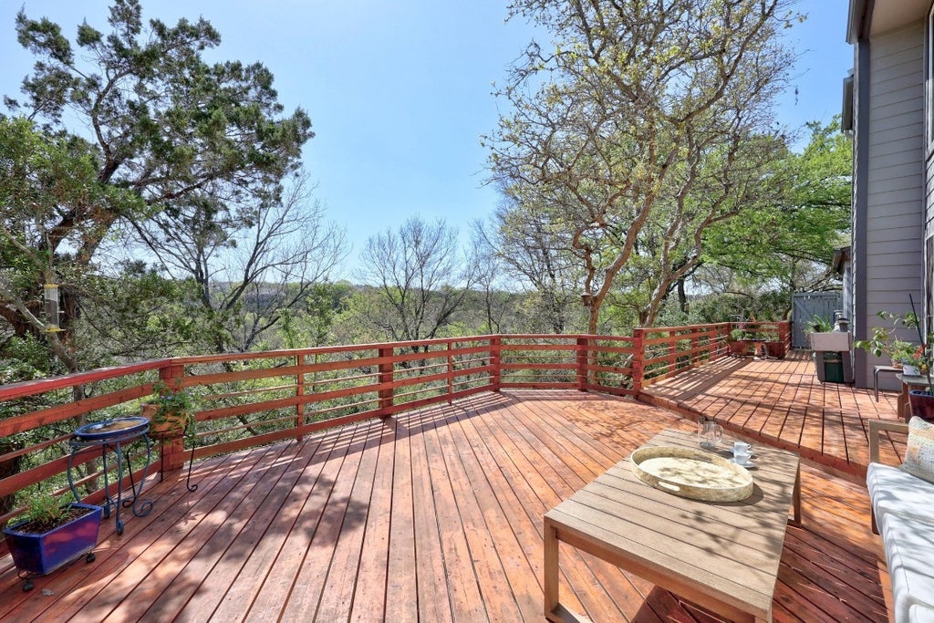 Spectacular greenbelt views and calm cul de sac living in NW Austin. In the Park at Spicewood Springs The Mountain neighborhood, this timeless classic has views across the upper Bull Creek Greenbelt from the entertainer’s deck and every room on the back of the home. Zoned to highly rated RRISD schools including Laurel Mountain Elementary, Canyon Vista Middle, and Westwood High. Built in 1986 and cared for by the original owners, the home has more than $150,000 in recent updates including roof and gutters, Marvin Infinity windows, AC units, siding, doors, interior and exterior paint, lighting, rebuilt back deck, appliances, countertops, and more. Inside, tall ceilings and natural light set a relaxed tone for daily life and gatherings. The renovated kitchen offers a center island with electric cooktop and seating, granite counters, gray subway tile, stainless steel appliances, and abundant cabinetry. The sunny dining area frames rolling hill views. A flexible home office opens to the deck with glass sliders. The main floor primary suite has a vaulted ceiling, walk in closet, deck access, and a spa like bath. Upstairs, two bedrooms share a stylish Jack and Jill bath. Outside, a refinished entertainer’s deck spans the back of the home for outdoor dining under mature trees, with steps that lead toward a sloped wooded area and trails along Bull Creek. Great for bird watch, adventure walks, and privacy. A few blocks away, enjoy Mountain View Park with a playground, picnic pavilion, tennis and sports courts, and trails. Quick access to 183, The Domain, the North Austin tech corridor, the FC stadium, and about 30 minutes to Downtown. Features include canyon and greenbelt views, two story ceilings over the living room, a main floor primary suite, a versatile flex and office space, and a low maintenance hillside setting that feels like a private retreat.