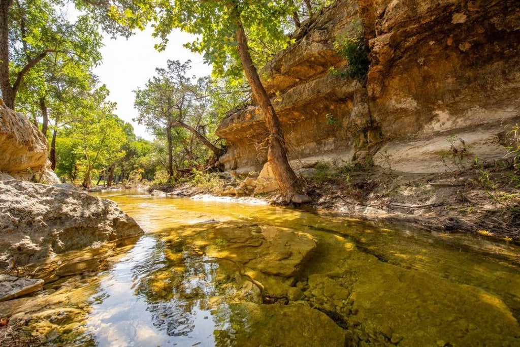 Prime unrestricted acreage with over 300 feet of frontage on Nameless Road, located directly across from the prestigious Travisso community in Leander -- one of the fastest-growing cities in the Greater Austin Metro area. This property offers a rare blend of private, ranch-style living with easy access to city amenities and incredible future potential. The home and guest house were thoughtfully remodeled and upgraded in 2021, while selective removal of brush and cedar brought new life to an already beautiful landscape. The owners were meticulous in selecting native plants, reducing water needs while enhancing the picturesque setting. From the home down to the bluff-lined creek and around the approximately 3, 000 square foot irrigated garden surrounded by pecan trees, this property truly embodies the Hill Country lifestyle.