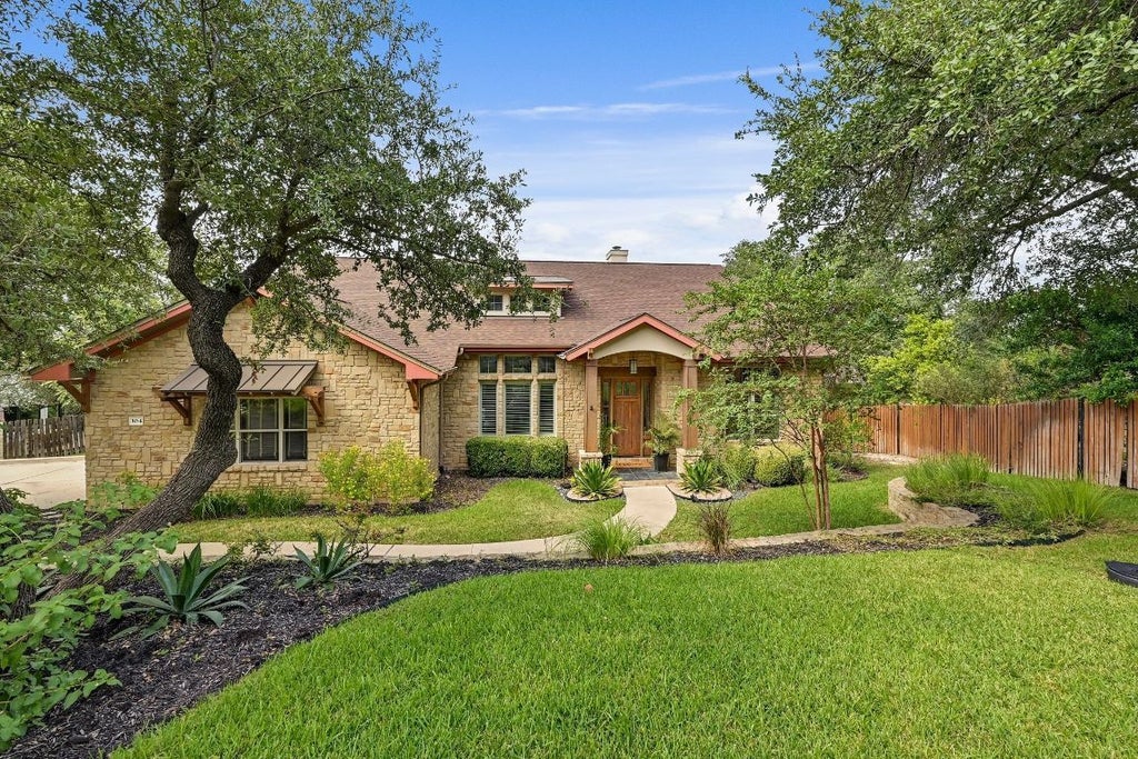 This inviting Lakeway home offers 4 bedrooms and 4.5 baths in a layout that lives like a single story, with all bedrooms on the main level. High ceilings, plantation shutters, crown molding, and a stone fireplace create warmth and character throughout the open living spaces. The kitchen features granite counters, an island, walk-in pantry, and abundant cabinetry, flowing easily into the breakfast nook and family room. The spacious primary suite includes a custom walk-in closet and a spa-style bath with jetted tub and walk-in shower. A private office with French doors and an upstairs bonus room with half bath provide versatile space for work, play, or guests. Step outside to a backyard retreat with a sparkling pool and waterfall, pergola, covered and screened porches, and mature landscaping. The side-entry garage offers additional storage and workshop space, while a new roof (2023) adds peace of mind. Located in highly rated Lake Travis ISD, this home is minutes from The Hills Country Club, World of Tennis, Yaupon Golf Course, Lakeway City Park, and scenic hike and bike trails. A blend of comfort, function, and resort-style living in the heart of Lakeway.