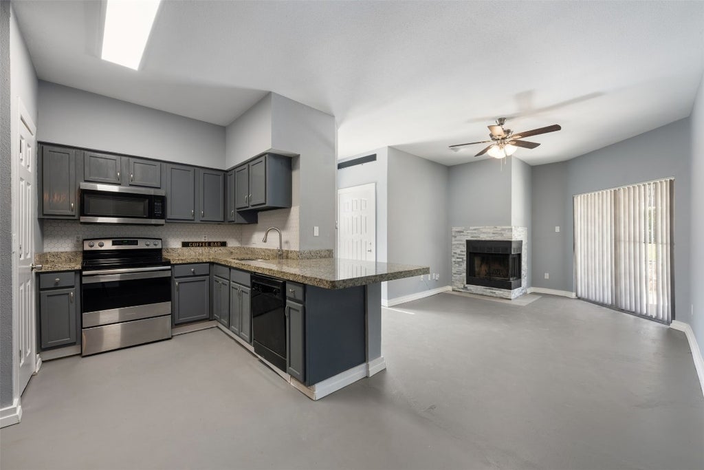Come check out this amazing and charming condo living in East Austin and minutes away from Downtown, the river, SOCO, and great restaurants . Spacious living room, open floor plan with an inviting fireplace, provides a warm and relaxing atmosphere, becoming the perfect space to unwind after a long day. The kitchen features a stylish backsplash, granite countertops, huge island plenty of cabinet space and open to the living room. Huge bathroom with garden tub, tile flooring. Enjoy the outdoors on your private patio perfect for savoring morning coffee or evening relaxation. Residents also have access to two community pools, dog friendly park, plenty of green space and a gated community.