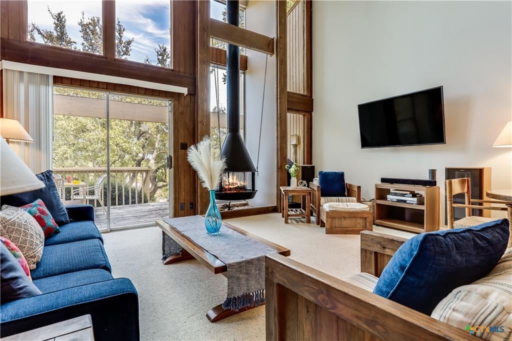 You opportunity to own a townhouse in this inviting lakeside community, nestled in the Texas Hill Country! This townhome backs to POA waterfront property! Great for a family vacation getaways, STR's , a permanent residence, or for a corporation to own as the ultimate perk: a fully furnished townhome for weekend getaways, relocations, or temporary housing. Perfect for rewarding top talent or easing the transition for new hires. Pointe Venture is not only a Lake Travis waterfront community, but a golf community and retreat as well, with an abundance of planned community activities! Upon entering the open, spacious interior you are drawn directly to views of the mature trees, greenbelt and view of the lake from the back doors and windows! The vaulted ceiling and open floor plan on the main floor create a bright and airy living space. The spacious deck off of the living room allows for plenty of room for entertaining, or simply relaxing and taking in the lake views and engaging with the local wildlife! The dining area is conveniently situated next to the breakfast bar, for additional seating. This home is a 3/2 fully furnished home with the generous sized primary bedroom located on the main level, offering a private walk out deck, for enjoying your morning coffee. Upstairs you will discover two additional bedrooms and a full bath. The laundry room is easily assessable, locate on the mail floor. Washer, dryer, deep freeze, and refrigerator covey with the sale of this home, AND all furnishings are negotiable! Point Venture amenities include a Waterfront Park with beach access, 2 Boat Ramps, Playground, Pavilion, Basketball & Badminton Court, Pool, Fishing, Floating Restaurant, Golf Course, Pickleball, Gym, Library, Meeting Room, July 4th Parade & Festivities, Meal Get Togethers, Book Clubs, Parents Club, Live Music Venues, Trivia Nights, Bunko and so much more!!!