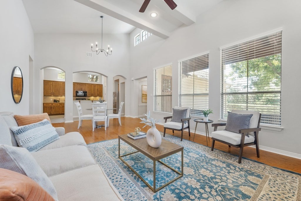 This beautiful lock-and-leave condo is nestled in the prestigious River Place golf course community. The two bedroom, two bath home features an open floor plan with beautiful hardwood floors, vaulted ceilings, 8 foot doors, fresh paint, and back yard with covered, private patio. The home has a new roof (2025), two car garage with lots of space, and separate laundry room. The windows allow for lots of natural lighting throughout the home. The HOA covers lawn, tree, and irrigation maintenance for effortless living. Enjoy your morning cup of coffee from the peaceful front or back patios. The highly-sought after, friendly neighborhood offers hiking trails and parks. Homeowners can join the River Place Country Club, which offers golf, tennis/pickleball, dining, swimming, and social events. The home is conveniently located near shopping (HEB, Target) and dining. Downtown and the Domain are just nine miles away with easy access around Austin. This is a must see in person!
