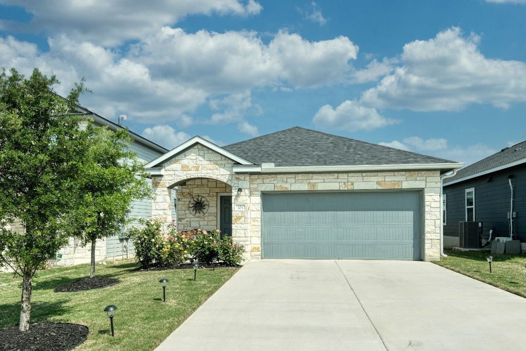 Stunning 3-Bedroom Home in Highly Sought after Sonterra Community! Welcome to this beautifully maintained & thoughtfully designed single-story home, built in 2023 . As you arrive, you're greeted by a charming front porch framed by blooming rose bushes—just the beginning of this home's inviting curb appeal. Inside, you'll find an open-concept floor plan filled with natural light, soaring ceilings, and stylish modern finishes. The spacious living & dining areas flow seamlessly together, featuring durable & elegant luxury vinyl plank flooring throughout the main living & wet areas. The gourmet kitchen is a standout, showcasing crisp white cabinetry, granite countertops, subway tile backsplash, stainless steel appliances & recessed lighting—perfect for entertaining or quiet evenings at home. The serene primary suite offers a relaxing retreat, while the two additional bedrooms provide flexibility for guests, family, or a home office. A recently added paver stone patio extends your living space outdoors—ideal for alfresco dining or enjoying peaceful Texas evenings. This home is truly better than new, featuring thoughtful upgrades, full gutters, inground sprinklers, garage door opener & paid-off solar panels at closing—offering long-term energy efficiency & monthly savings. Set in a vibrant, amenity-rich community with a swimming pool, park, basketball court, and scenic walking paths, this home combines comfort with convenience. Enjoy quick access to I-35 for easy commutes to Georgetown, Austin, & Temple. Close to local dining, shopping at Wolf Ranch Town Center, Round Rock Premium Outlets, outdoor recreation at Lake Georgetown & Blue Hole Park. For added convenience ~Coming soon to Jarrell is a Walmart Supercenter! Convenient to Igo Elementary. This move-in ready gem is nestled in a growing, commuter-friendly neighborhood—don't miss your chance to make it yours!