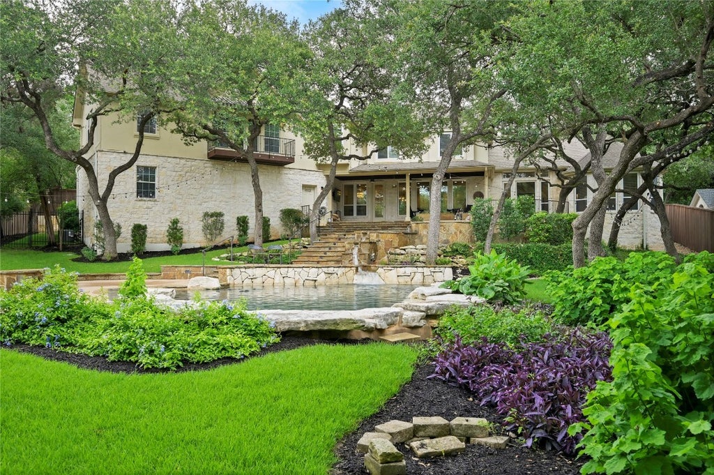 Fresh from a designer-led renovation, 2704 Regents Park offers a truly turn-key experience in the coveted Treemont enclave of Westlake—inside the acclaimed Eanes ISD. Hardwoods floors, updated fixtures and an airy, open floorplan create an effortless flow from the foyer into a chef’s kitchen that anchors daily life with stainless steel appliances and an oversized center island. Walls of windows in the adjoining living room pull in natural light and frame the outdoor oasis, highlighting the home’s seamless blend of indoor polish and backyard resort living. The flexible layout was designed for modern lifestyles, featuring four gracious bedrooms—including a serene main-level primary suite—plus a tucked-away study, an additional office/flex room for remote work or fitness, and a dedicated media room for movie nights and game days. Spacious secondary bedrooms cluster around an upstairs landing that doubles as a casual lounge, while refreshed baths showcase contemporary tile, sleek cabinetry and thoughtful storage, making the entire residence feel fresh, current and immediately livable. Step outside and summer unfolds across terraced limestone patios that cascade to a resort-style pool and spa accented by a gentle waterfall, all enveloped by lush landscaping and a fenced backyard for privacy and play. Whether you’re hosting al-fresco dinners beneath the stars, lounging at the pool, or watching family, guests and pets explore the layered lawn, the setting feels like a private retreat just a few miles from downtown Austin, Zilker Park and top-rated Eanes schools. Move-in ready perfection meets Westlake convenience. A mandatory 1% HOA fee is due annually upon the sale of the property. Tax and assessed values are estimates for illustration purposes only. All figures should be independently verified.
