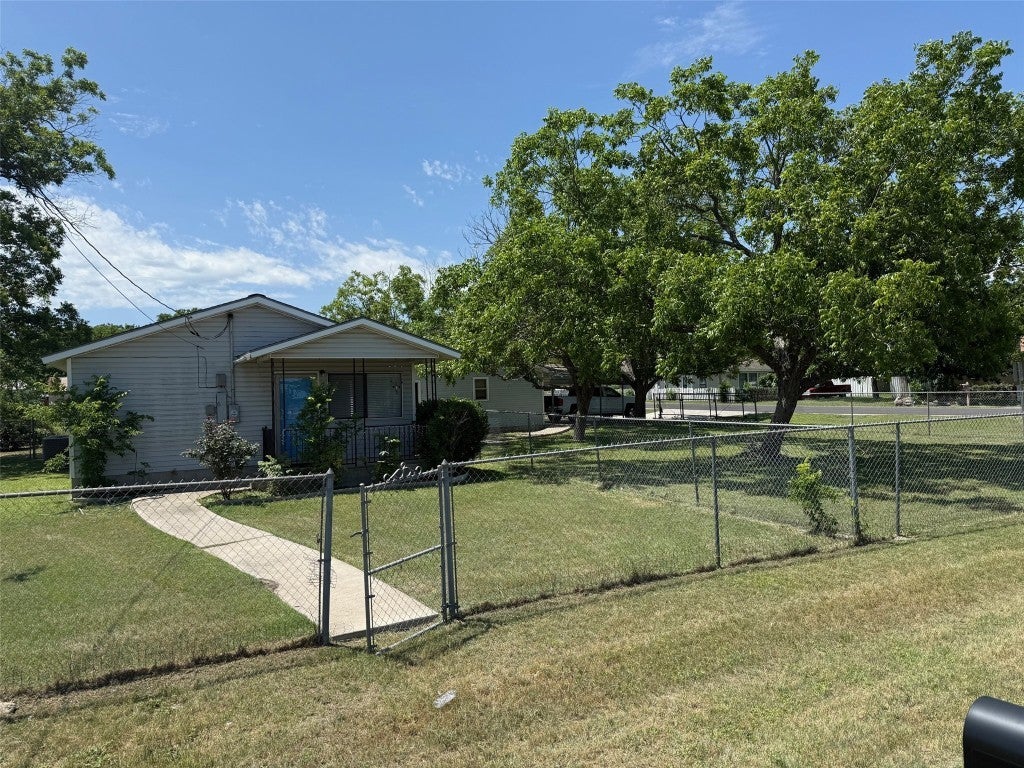 cozy 2 bed 2 bath in Downtown Kyle. completely fenced in corner lot with tons of shade from 4 large pecan trees. large detached garage with covered carport. home has washer, dryer, refrigerator, range. covered front patio. close access to I-35 and also within walking distance of many restaurants in downtown Kyle.