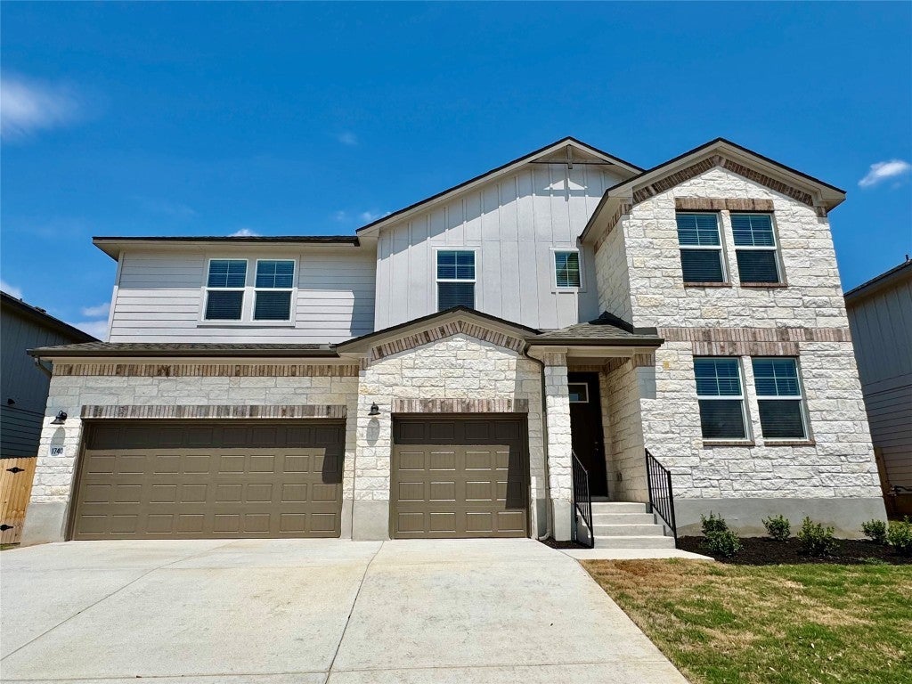 Brand new, energy-efficient home available by Jul 2025! Unwind in the Revere's primary suite or private study, while the kids enjoy the media and extended game rooms upstairs. Linen cabinets with off-white quartz countertops, brown grey EVP flooring with dark gray tweed carpet in our Divine package. Now selling in Kyle, TX, Opal Meadows features beautiful single-family homes on oversized lots. Each home includes extra garage storage, covered patios with sliding doors, and much more. Every two-story plan has two bedrooms downstairs, perfect for guests or extended family. Residents can look forward to spending time outside at the community playground and walking trails. Each of our homes is built with innovative, energy-efficient features designed to help you enjoy more savings, better health, real comfort and peace of mind.