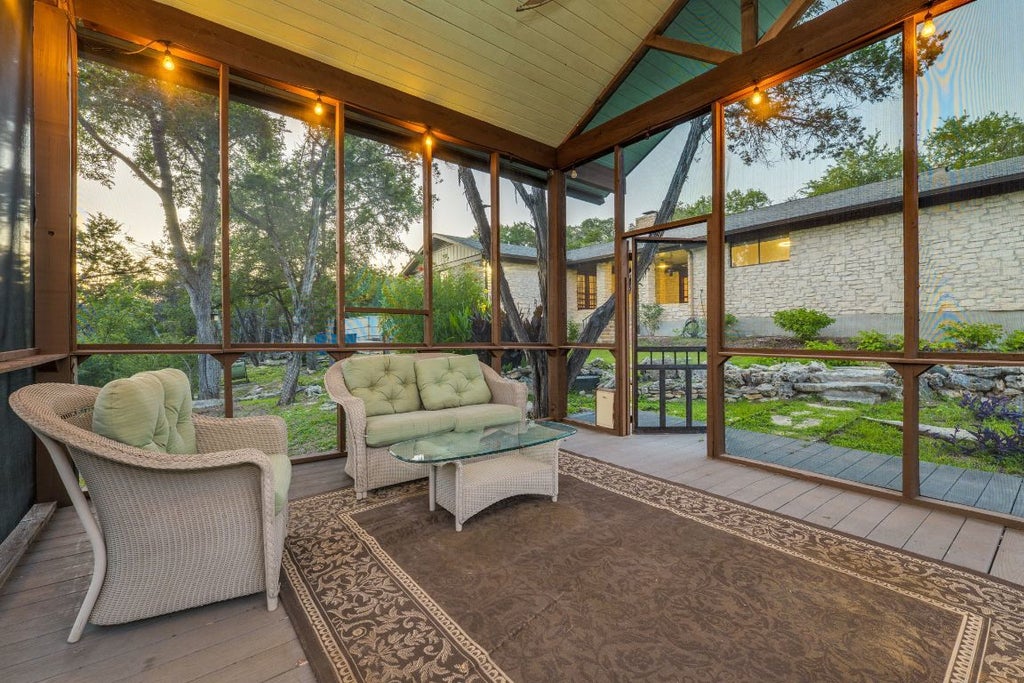 This single-story custom home backs to the Canyon Creek Greenbelt in desirable Northwest Austin, near top-rated Westwood High School. Enjoy sweeping canyon views, mature trees, and a split floor plan designed for privacy and entertaining—all on a rare 1+ acre lot. The layout offers separate primary and guest wings. The primary suite includes a 100+ sq ft flex room, private deck, and spa-like ensuite. A sunken family room features vaulted ceilings, built-ins, and a large fireplace, while the efficient kitchen opens to the den—perfect for entertaining. Multiple living spaces provide maximum flexibility. Enjoy outdoor living on the covered porch, accessible from the den, primary suite, and guest room, and overlooking a tranquil pond. Additional features include raised garden beds, a potting shed, a stone bridge, and a screened-in gazebo. A wrought iron fence preserves the view while defining the property line. Xeriscaped for low-maintenance living, the grounds are supported by drip irrigation and dual rainwater cisterns. The property has both a private well and city utilities. Recent upgrades include: High-efficiency HVAC, Updated electrical systems, Pella fiberglass windows, EV-ready wiring, Smart irrigation conversion, Post-freeze tree care (Tree Survey available).