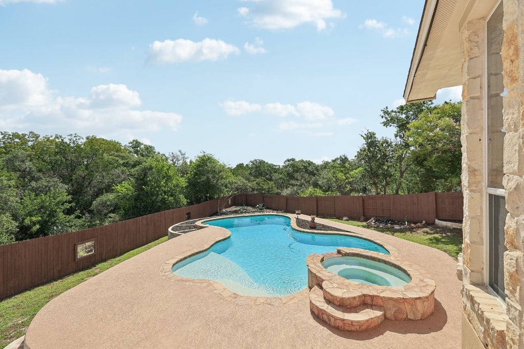 Welcome home to your private oasis in the Canyon Creek community! Premium cul-de-sac lot backing to Greenbelt. Incredible outdoor living & entertaining with sparkling in-ground pool & spa looking out to panoramic views! Step inside to the grand entry foyer with soaring ceilings, wrought iron stair railing, and stone flooring that continues to the formal dining room. Beautiful kitchen with built-in SS appliances, gas cooking, granite countertops, and center island with storage. The main living area features a built-in entertainment nook, gas fireplace, and large windows that capture Hill Country views. The entire right wing is dedicated to the primary suite retreat. Wall to wall windows once again highlight your backyard views. Attached bathroom en-suite with dual vanities, garden tub, separate shower, and walk-in closet with built-in storage. Upstairs you’ll find the remaining 3 bedrooms & full bath, a flex room that can function as a home office or media room, plus a spacious bonus room/second living area. Relax and unwind on the shaded covered patio or on the sunny deck overlooking treetop views. Enjoy the plentiful community amenities including tennis/pickleball courts, hiking/biking trails, playground & more. Easy access to 620 & 183 w/ convenience to outdoor recreation on Lake Travis, Lakeline Mall & numerous dining/recreational spots. Award winning Leander ISD schools.
