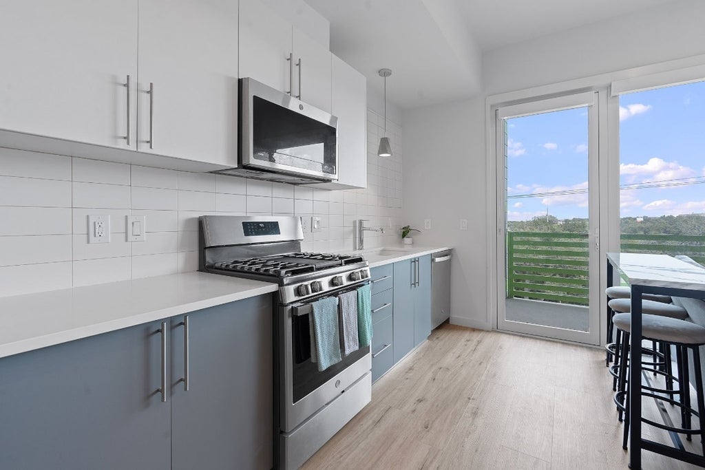 Prime top-floor, corner studio in one of Austin's most desirable neighborhoods. Located just 4 miles from downtown, this residence combines convenience with a functional, modern layout. High-end finishes, top-of-the-line Hunter Douglas roller shades, stainless steel appliances, and gas cooking elevate the space, while the oversized windows and balcony offer sweeping, unobstructed views. To top it all off, enjoy the added convenience of a private, attached storage unit, offering both practicality and versatility. Take advantage of maintenance-free condo living in Austin's vibrant 78704!