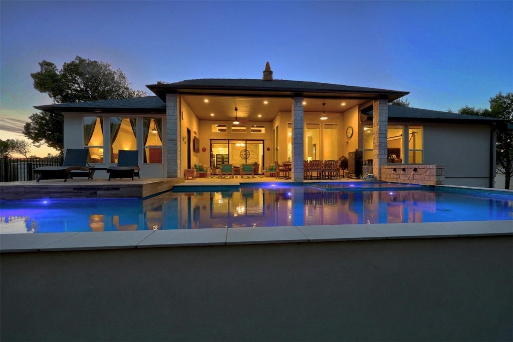 Welcome to your ultimate retreat where Luxury and Comfort converge in this stunning 4 Bedroom, 4.5 Bath Drees built home situated on a secluded 1+ acre corner cul-de-sac lot. Seller Offering an Assumable 2.875% VA Loan, this loan is assumable by both veterans and non-veterans. With over 3500 sqft & $150K in Upgrades, this immaculately designed home features a spacious Gourmet kitchen with 42” cabinetry topped by glass paneled stack cabinetry & crown molding. Beyond the oversized granite island countertop with barstool seating for 4, one transitions to a vaulted & beamed ceiling family room with fireplace. Extras include game & media room complete with surround sound audio; addition audio is in place throughout the house. As you walk thru a wide 3 panel sliding door into the Extended Outdoor living space, you are perfectly situated for year-round entertainment. The primary bedroom has a sitting area with tons of natural light, tray ceilings, a full bath complete with a soaking tub and frameless walk-in shower, and a huge walk-in closet. Image a lifestyle where every day feels like a vacation. Control your personal resort style paradise in a PebbleTec Pool & Spa that shimmers under 5 LED color-changing lights, heated by propane and easily controlled with Pentair automation for a tailored experience. Community amenities include pools, marina, club house, sport court with pickle ball and basketball, BBQ grills & smokers pavilion, playground, dog walking trails, scattered community libraries, walking/hiking trails and kayak clubs on the banks of Devil’s cove of Lake Travis. Come live the Luxury Life at The Hollows!