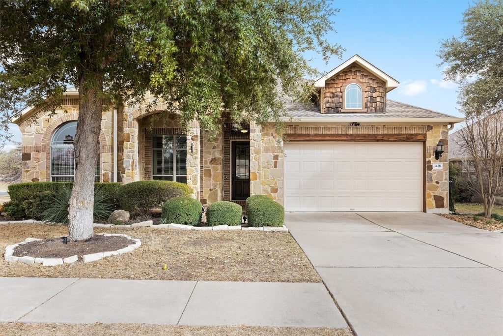 Step into luxury with this meticulously designed former model home, nestled on a desirable corner lot. Every detail of this property reflects a commitment to quality and aesthetics, making it a rare find in the market. From the moment you enter, the exquisite interior stone work sets a tone of understated elegance that flows throughout the home. The chef’s kitchen is a masterpiece of convenience and style, featuring stainless appliances, a generous butler's pantry, and an oversized pantry that caters to all your storage needs. Entertain in style with a formal dining room that promises memorable gatherings, enhanced by the timeless beauty of hardwood floors that extend into the main living areas. This home offers a practical yet luxurious layout with three bedrooms on the main floor, each boasting walk-in closets for optimal organization. The master suite is a retreat of its own, with ample space and a spa-like ambiance. Work from home is a breeze with a dedicated office space, offering peace and privacy. The compact backyard allows for minimal maintenance, perfect for busy lifestyles or those who prefer to spend their time enjoying the indoors. Elevate your entertainment options with a large bonus living space on the second floor, complete with a built-in bar and a convenient half bath—ideal for hosting guests or enjoying a private escape. Additional features include a spacious 3-car garage, providing plenty of room for vehicles and storage. Located in a sought-after neighborhood, this home brings together luxury and convenience, making it an ideal choice for discerning buyers. Don’t miss the opportunity to own this impeccable home where every detail has been crafted for comfort and style. Schedule your viewing today and experience elegance that speaks volumes.