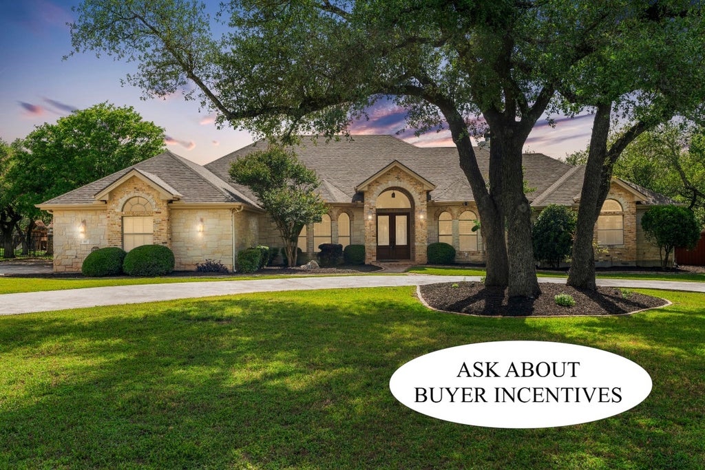 Welcome to your dream home in the prestigious River Chase community, a private enclave of fewer than 90 homes nestled along the Middle Gabriel River. From the moment you arrive, the roundabout driveway, grand courtyard entrance, and towering trees set a tone of elegance and tranquility. Inside, rich wood floors flow through the open living and dining areas, creating a warm and inviting ambiance. The thoughtfully designed kitchen features abundant cabinetry, granite countertops, a double island, a breakfast nook, a walk-in pantry, and high-end appliances including a Bosch dishwasher and a refrigerator. The spacious living room boasts built-ins, a cozy fireplace, and a picturesque window overlooking the serene backyard. Dedicated study (noted as 4th bedroom in the count, but no closet & double doors) is opposite the dining room. The primary suite is privately situated and offers a luxurious ensuite bath with a walk-in shower, soaking tub, and dual vanities. Secondary bedrooms are located on the opposite side of the home for added privacy. Step outside to an entertainer’s paradise with a covered patio, a Louvered roof, ceiling fan, and an extended deck—perfect for relaxing or hosting guests. Surrounded by mature trees with room to add a pool, the backyard offers exceptional privacy and shade. Located in the desirable Georgetown ISD and close to HEB, major roadways, shops, restaurants, and Lake Georgetown, this home combines luxury, comfort, and convenience in one perfect package.