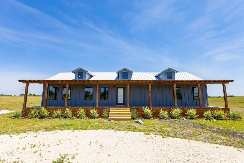 This home was built to be your country escape. Positioned towards the front of your 10 acres, the peace and quiet of county living is waiting on your back porch. Your next neighbor to the back is over 1500 feet away. Your 10 acres is ideal for agriculture, animals or another home. You've got 3800 feet of fence all the way around the perimeter so bring your animals and pets. Light deed restrictions prevent the landowners next door from doing anything to take away from the value of your investment. Like putting a mobile home there. But you're outside the city so their rules and taxes don't apply. You're connected to Crystal Clear's water line, Bluebonnet's electric and your private septic system. Built new in 2022, the 1560 square foot home has everything you need and nothing you don't. 4 bedrooms, open kitchen/living floorplan and two bathrooms. The home is currently being rented - you can keep the rental and build behind or move in immediately and start living a quieter life. Your large front patio is where you watch the sunset. Your private, motorized gate will welcome you home each day.