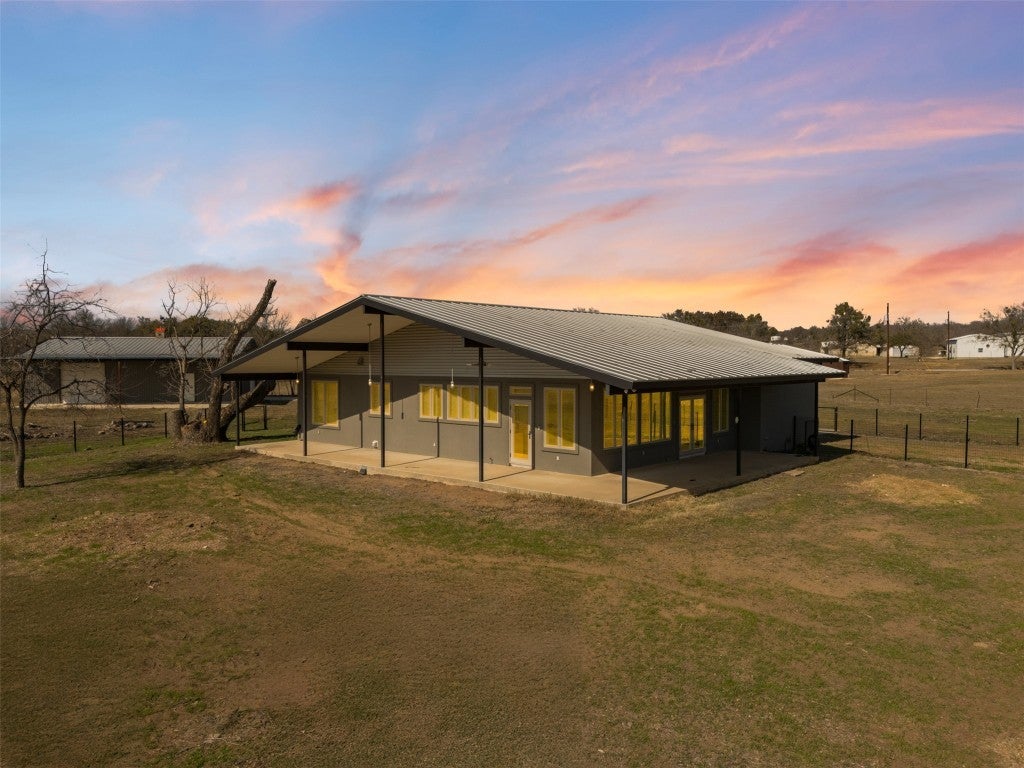 Hill Country Retreat with Endless Possibilities! Experience the perfect blend of country tranquility and city convenience with this stunning4-bedroom, 2-bathroom home, ideally located just minutes from Marble Falls in the sought-after Timber Ridge Community. Nestled on almost 4 acres, this 2148 sq. ft. home is bathed in natural light, offering breathtaking Hill Country Views! Step onto the wraparound covered porch, where you can enjoy your morning coffee or unwind in the evening, surrounded by a completely fenced yard. Inside, the open-concept design seamlessly connects the living, kitchen, and dining areas, featuring a large island and an oversized pantry/utility room for ultimate convenience. The split-bedroom layout ensures privacy, while the primary suite boasts a walk-in closet that doubles as a built-in saferoom/tornado shelter. Built to last, this low-maintenance, energy-efficient home features ICF (insulated concrete forms) and steel-framed construction, complemented by a durable metal roof. The polished concrete floors, epoxy-finished concrete counter tops ,and versatile finishes make it easy to personalize with an industrial, modern, or farmhouse aesthetic. For those needing extra space, the38' x 50' detached workshop/garage is a true standout! This 1,900 sq. ft. structure includes a full bath, multiple roll-up doors, spray foam insulation, water softener, RV hookup w/ septic & water, offering two types of RV plugs. With room to roam, work, and play, this exceptional property is move-in ready!