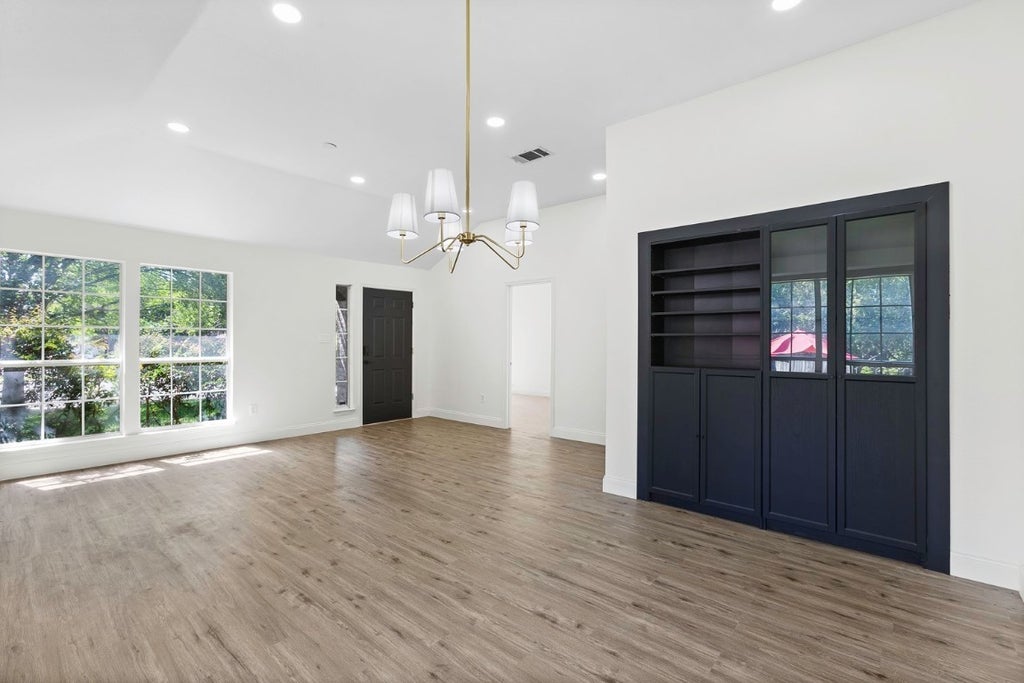 Rare, one story home with 5 beds and 3 full baths! Completely remodeled, new laminate flooring all throughout, new light fixtures, kitchen cabinets and quartz countertops. Great backyard with mature trees and a covered patio with access from the master bedroom. Outdoor shed great for storage, wired with electricity for lighting. Open kitchen with dining space that flows into a cozy family room with an electric fireplace. Additional formal dining room near the entrance with chic built in for a bar and extra space to the side for a small lounge / sitting area.
