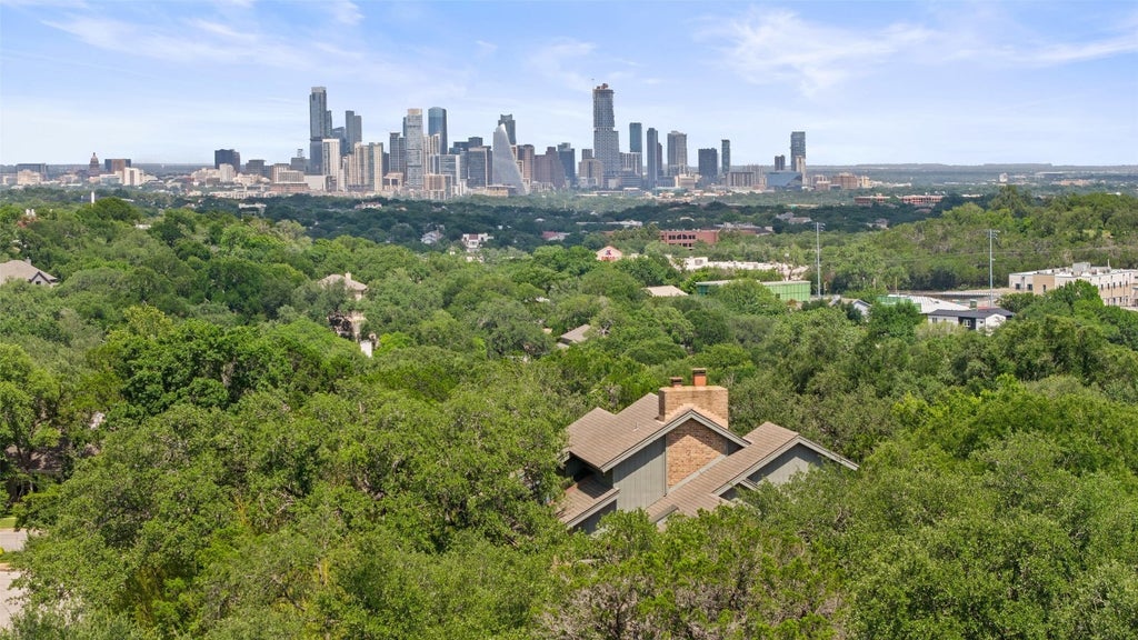 On a wooded lot in one of Austin’s most coveted enclaves, this peaceful property is the epitome of a one-of-a-kind retreat. Set on a remarkably private, wooded .43-acre lot, this home offers a rare combination of seclusion and connectivity. Located in the heart of Westlake and walkable to Westlake High School, this custom property allows its residents to feel worlds away while enjoying unparalleled proximity to the best of Austin. A dramatic atrium-style entry, framed by marble walls, soaring wood-beamed ceilings, and a wall of glass, creates a striking first impression and evokes the calm elegance of a refined retreat. Every corner of this residence reveals thoughtful details—angles, textures, and finishes that reflect a worldly design sensibility. The floor plan is both flexible and inspiring, with three spacious living areas and countless outdoor vignettes. The main level of the home features a sleekly integrated kitchen and family room, designed with both entertaining and everyday living in mind. A sunlit breakfast nook tucked beneath cathedral ceilings provides a peaceful start to the day, while a hidden walk-in pantry behind a leaded glass door adds charm and function. Two secondary bedrooms and a full bath occupy their own wing, offering privacy and comfort. Outdoor access leads to the pool and a series of stone pathways that wind through the property’s lush landscape and large usable yard. Upstairs, a generous primary suite feels like a true retreat, complete with a wraparound treetop deck, expansive bath, and a versatile layout. A large secondary living area—anchored by a gas fireplace—can serve as a media room, play space, or creative studio. The third level offers an unexpected bonus: a full guest suite with its own living room, fireplace, office, and private sun deck, all with sweeping views of downtown Austin. With its distinctive character and prime location, 3601 Moon River Road represents a rare opportunity to live expansively in the heart of it all.