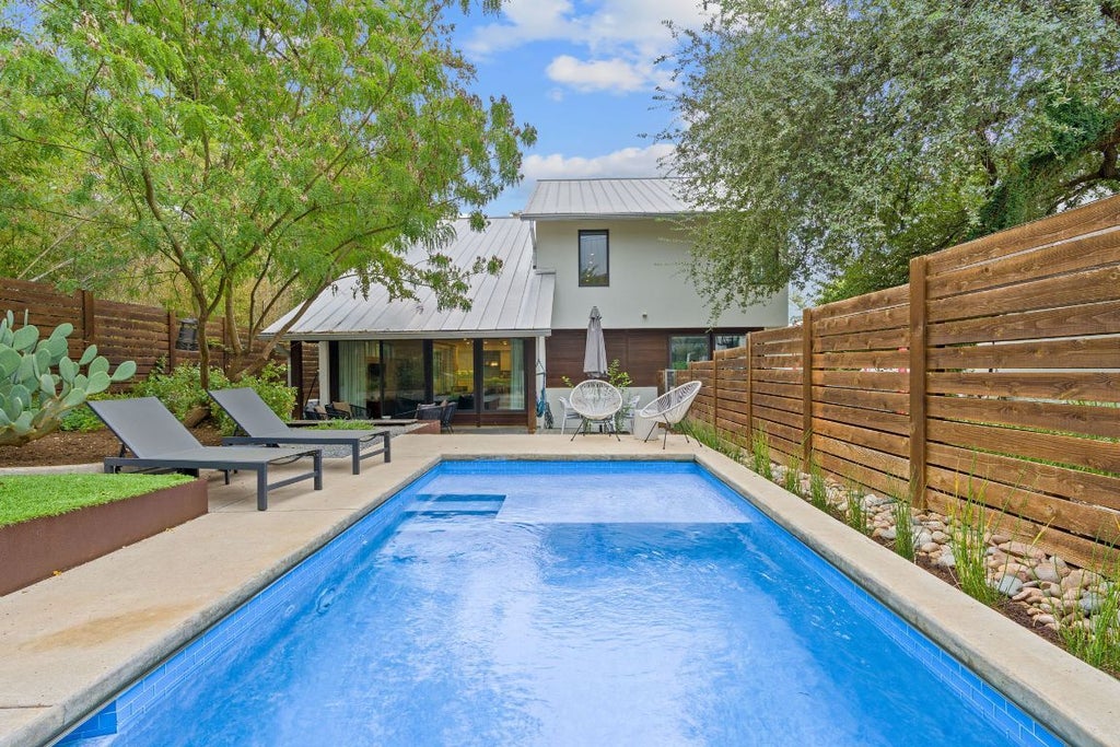 Location doesn't get much better than this Clarksville retreat tucked out of hustle and bustle but steps from downtown and Ladybird Lake! This 5 star green, low maintenance home features a perfect balance of urban convenience and single family privacy. The custom floor plan leaves nothing to be desired with four bedrooms (one bedroom includes a built in murphy bed), a loft space perfect for office or extra living, and a tucked away playroom behind a hidden door. The main living space features two walls of sliding glass doors, vaulted ceilings, custom drapery and automatic blinds. There is no shortage of closet and pantry space in this meticulously designed space. Entertaining made easy in this urban oasis with pool, covered patio, and Trex deck. Rare 2 car garage with 3 additional parking spaces. Zoned to Mathews Elementary, O'Henry Middle and Austin High. Ready for tenants mid September, rent includes weekly pool and lawn maintenance. Agent owned.