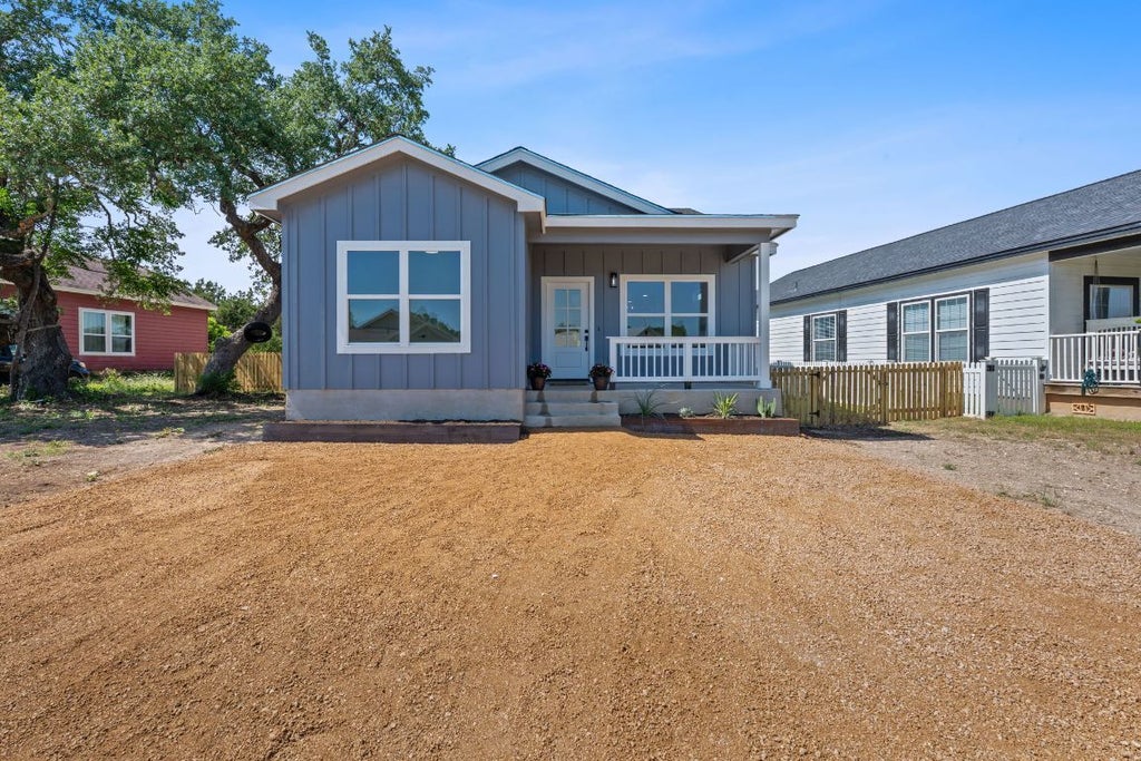 Welcome to a charming enclave of homes tucked away in the heart of the Texas Hill Country. Located in a small, private circle within a thoughtfully planned condo regime, this brand-new craftsman-style home blends style, function, and serenity. Featuring 3 bedrooms and 2 full baths, this home provides an open-concept layout with a seamless flow between the living, dining, and kitchen areas. Abundant natural light, a neutral designer palette, and durable hard-surface flooring (concrete, luxury vinyl plank, and tile) enhance the modern aesthetic. The kitchen is a standout with quartz countertops, shaker-style cabinetry, subway tile backsplash, stainless steel appliances, and a center island ideal for meal prep or casual dining. A built-in desk in the kitchen area adds functionality, making work-from-home days a breeze. Retreat to the private primary suite, where you'll find a crisp bathroom with a large dual-sink vanity, great cabinet storage, shower/tub combo and a walk-in closet. Additional highlights include a dedicated laundry room with extra storage, a covered patio with ceiling fan, and a generous backyard backing to peaceful green space. Enjoy added privacy with partial wood fencing, convenient outdoor parking, and access to community amenities like a playground and sport court. Located within the highly acclaimed Dripping Springs ISD. Easy access to Dripping Springs, Austin, Wimberley, and Buda—this home is your gateway to everything the Hill Country has to offer.