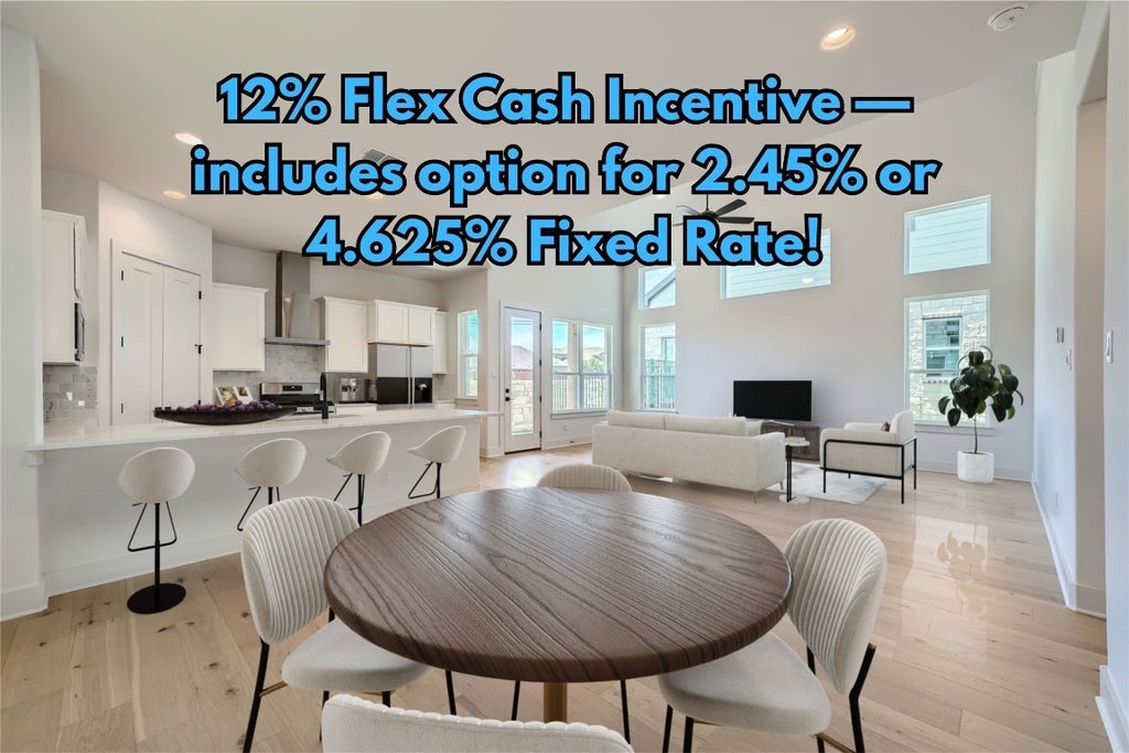 Limited-Time Offer! Lock in 12% Flex Cash! Discover unparalleled elegance in this meticulously crafted 4-bedroom, 3-bathroom home. The rich hardwood floors exude warmth, while the gourmet kitchen dazzles with a striking island adorned with Metro Quartz Terra Luna countertops and sleek Maple White cabinetry. The seamless open-concept design effortlessly unites the kitchen, dining, and living areas, creating a perfect setting for both intimate gatherings and grand entertaining. With a versatile study room that doubles as a 4th bedroom and a serene backyard retreat, this home is thoughtfully designed for modern living. Nestled in a prestigious community with top-rated schools, it promises an unmatched lifestyle of luxury and convenience.