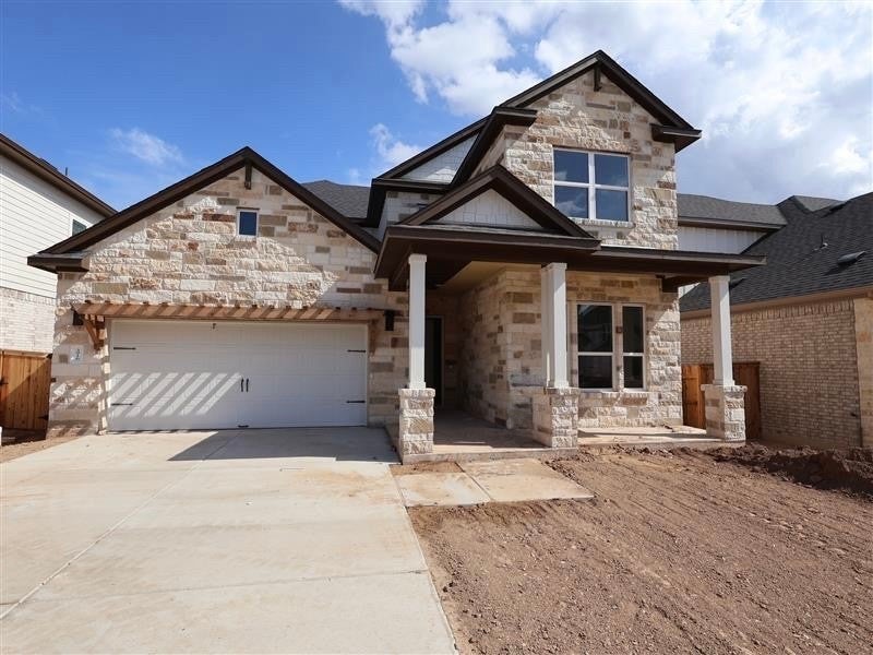 This wonderful Balcones plan, known for its open concept, features a private front bedroom and bathroom tucked just off the foyer, perfect for guests. Farther down the entry you'll a formal dining room, from whitch you can enter to kitchen and pantries. The kitchen opens to the grand family room with high ceilings. This north facing home has a lot natural light from its 2 stories of windows in the family room. The owners suite is right off the family room, and features a beautiful bay window, two closets in the bathroom, and a dual vanity sink. You'll notice the beautiful open rail staircase as you walk to the 2nd floor. Here' you'll find two spacious bedrooms, and a large bathroom between them. Just across the way, there's a large game room, and that leads you to your very own media room, complete with it's own powder bath. The backyard of this gorgeous home features an extended covered patio with a gas line, perfect for outdoor cooking. Call to schedule a visit to view this home with all of its upgrades and design options. Estimated completion date is in October.