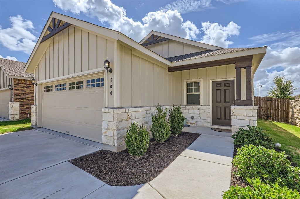 Greetings from 500 Compania Cove, in the amazing neighborhood of Santa Rita Ranch. This single-family residence is practically brand new and just waiting for someone to make it their happy place! Picture yourself waking up in one of the three bedrooms, ready to greet the day with a smile as sunlight streams in! With two bathrooms, mornings are a breeze because there's plenty of space for everyone to get ready to tackle whatever adventures lie ahead. You will love the concrete floors and the fully paid solar. The electric bills will make you do the happy dance. This is the perfect floor plan for a first-time home buyer or someone who is downsizing. Refrigerator and washer, and dryer will convey with an accepted offer. This is an amazing corner lot with a stone wall surrounding the property. Built in the magnificent year of 2021, this home is ready to be filled with laughter, love, and memories that will last a lifetime. This neighborhood has amazing amenities and is located close to shopping, restaurants, and the new HEB.